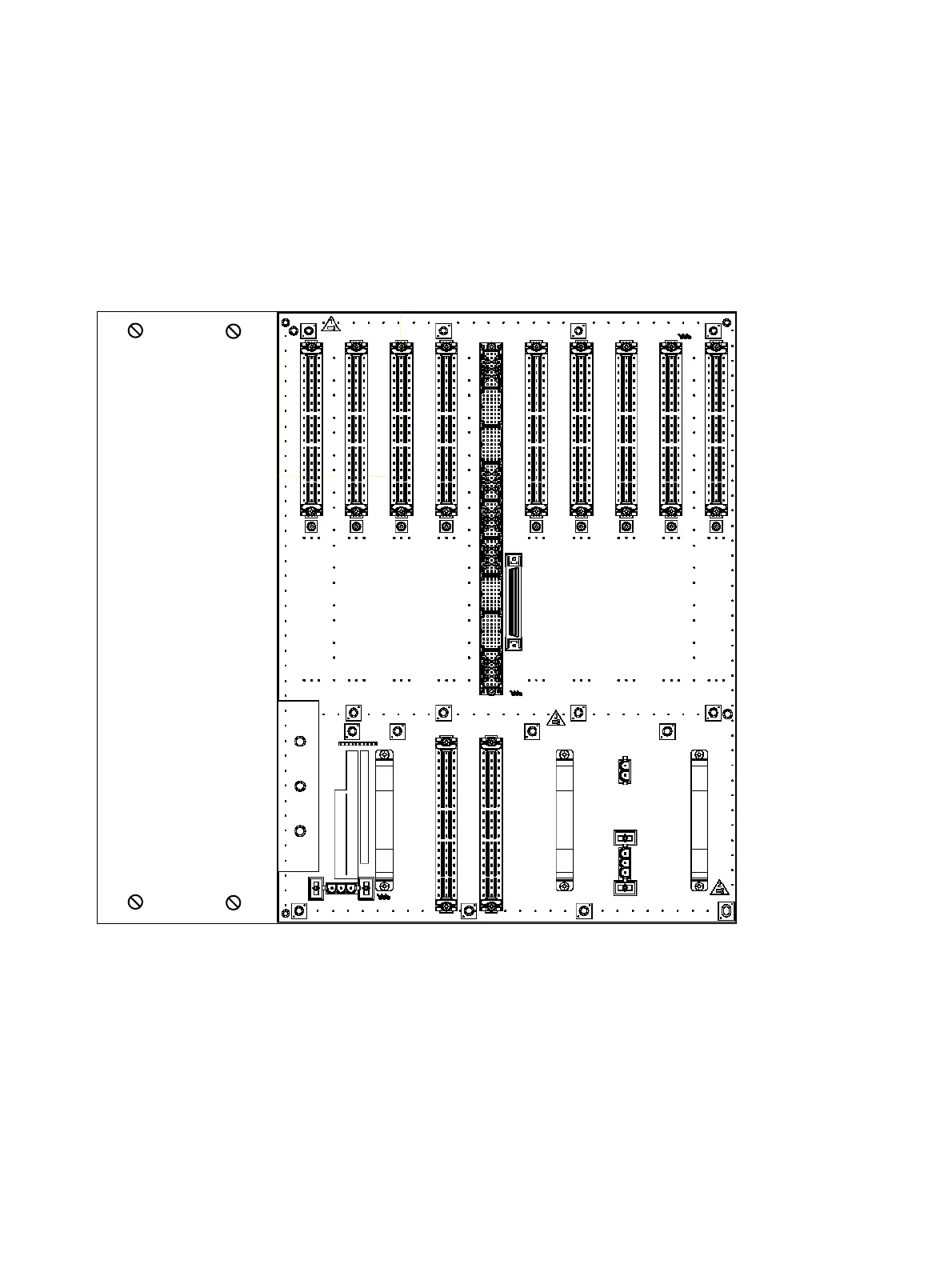 Figure 3-20 HiPath 3800 - Connectors and Jacks on the Backplane of the Basic Cabi-