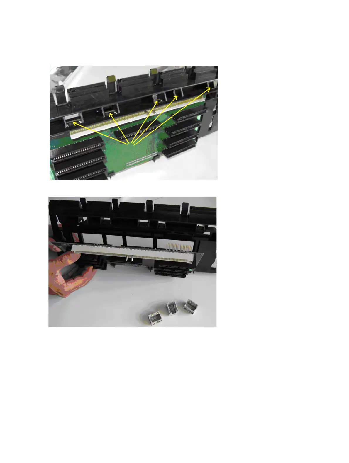14. Insert the plastic clips on the front of the motherboard and expansion cards.