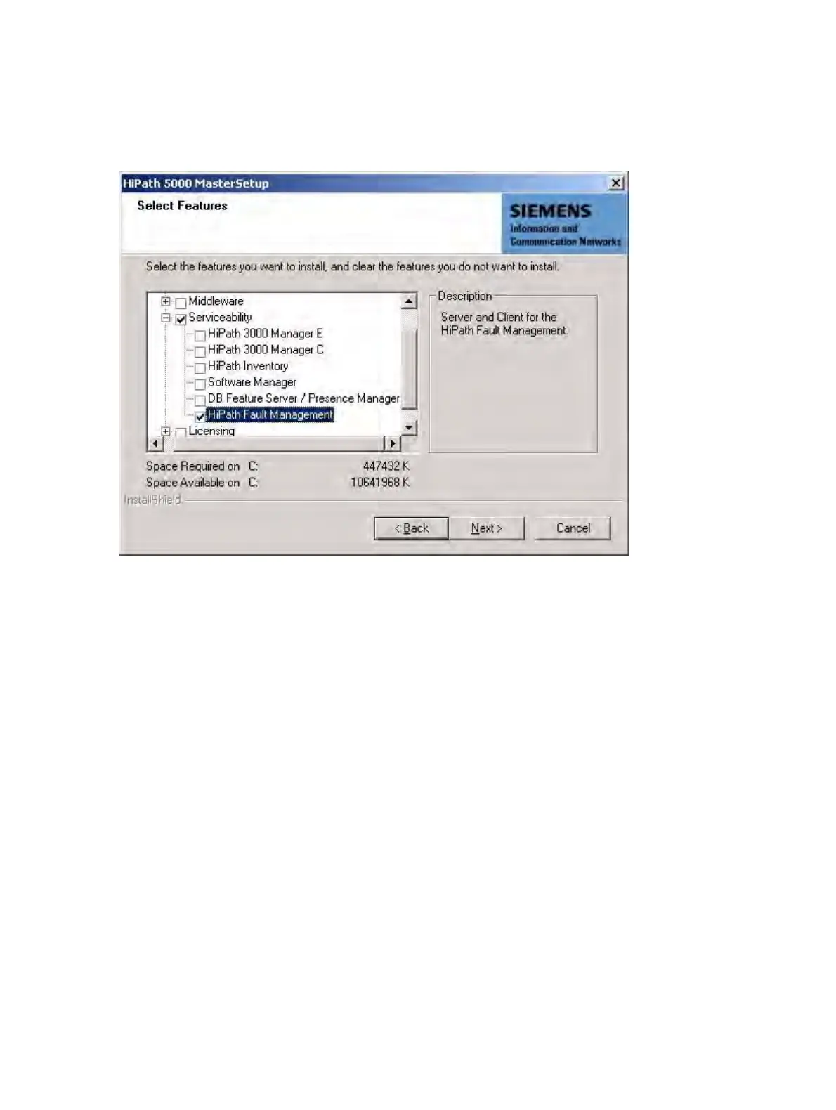 Select the HiPath Fault Management components you want to install and deselect the ones