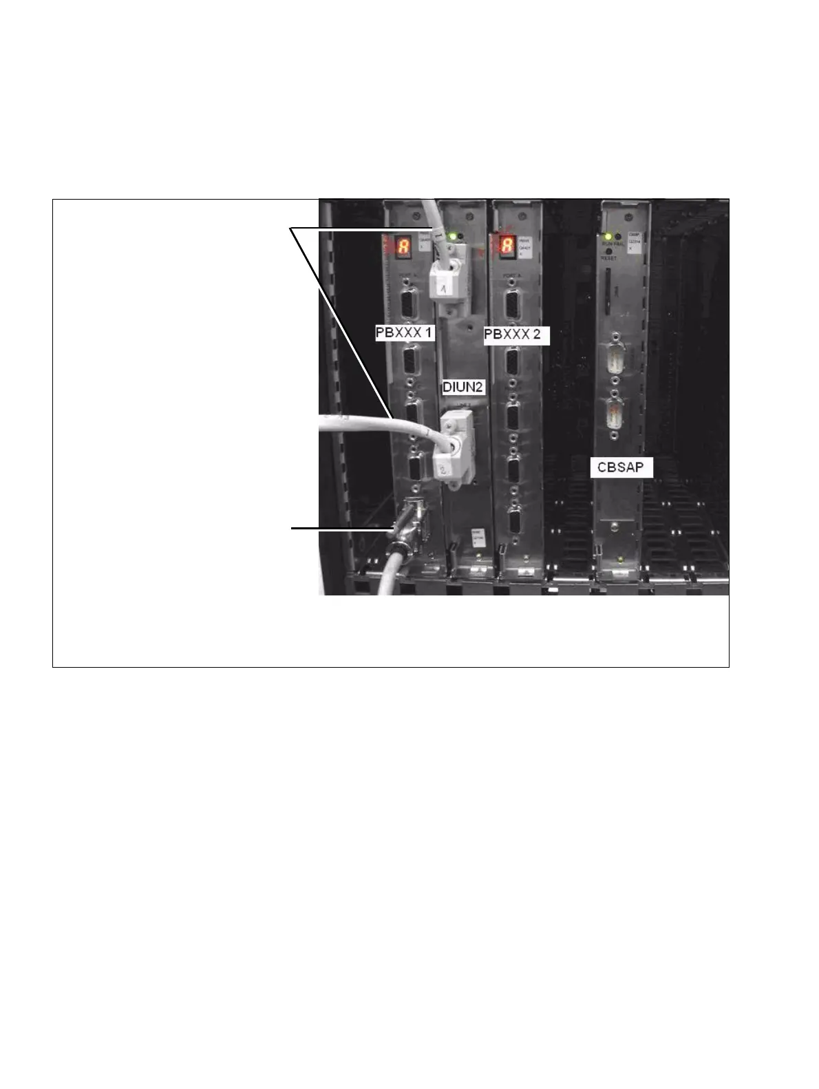 The figure below shows an example of a DIUN2 with two PBXXXs in the basic cabinet.