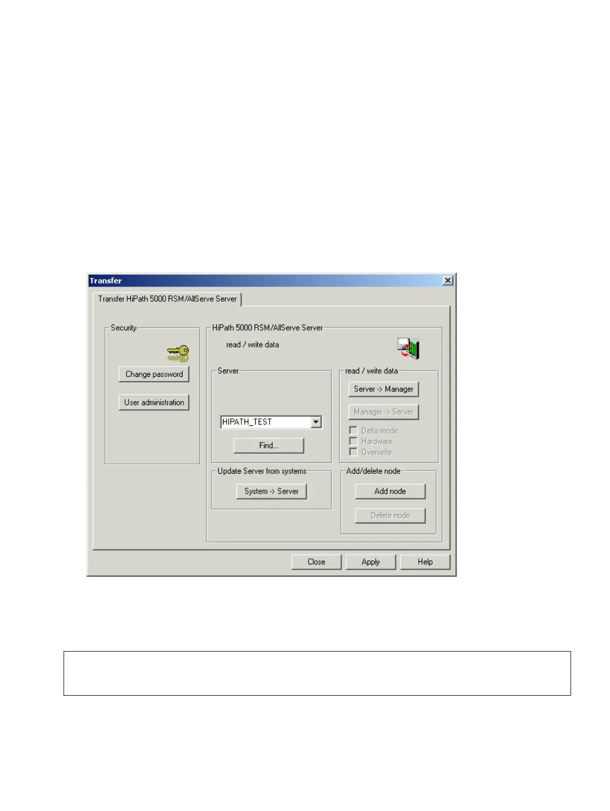 6. The Transfer (HiPath 5000 RSM/AllServe Server) dialog appears.