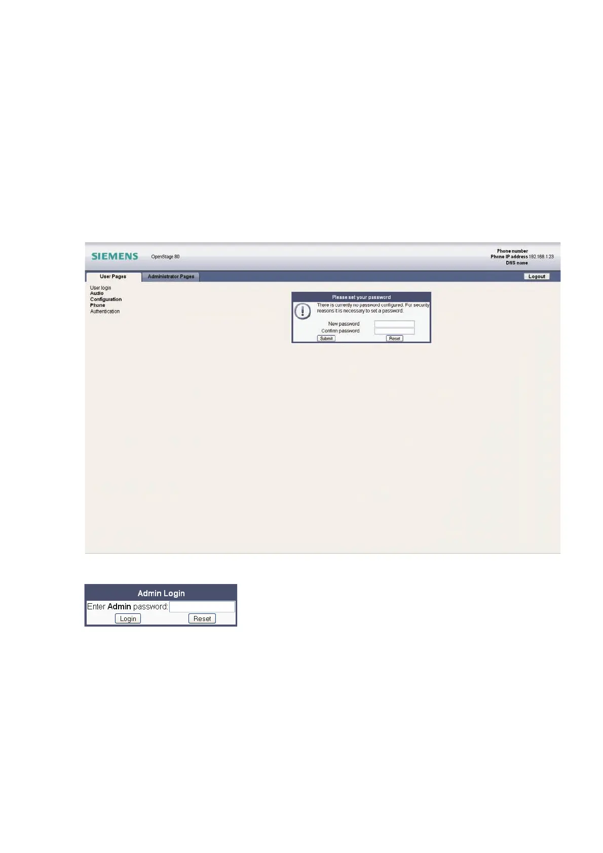 The following screenshot shows the web interface of an OpenStage 80 phone: