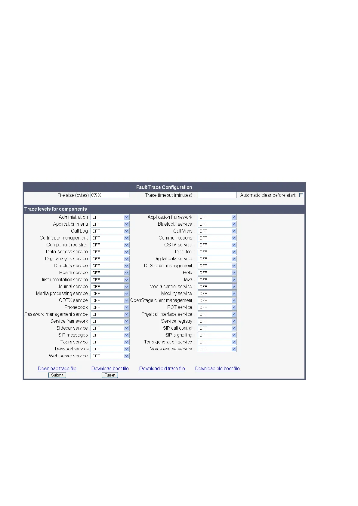 Diagnostics > Fault Trace Configuration
