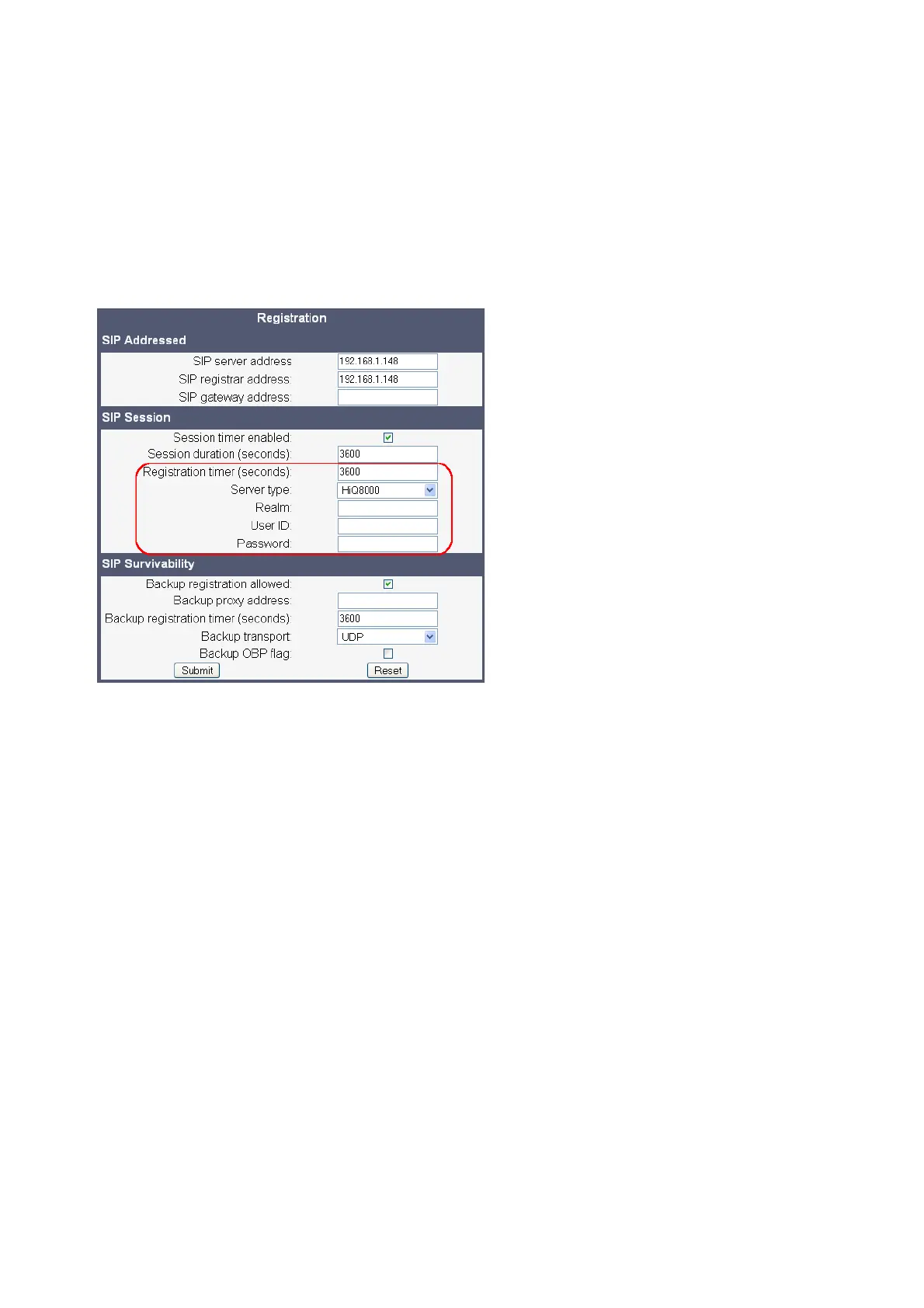 For registration at the HiPath 8000 SIP server, a SIP user ID and passwort must be provided
