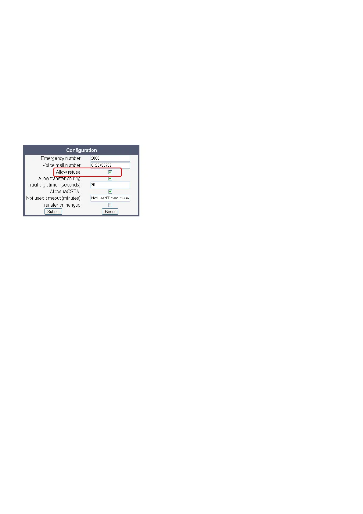 This parameter defines whether the Refuse Call feature is available on the phone. The possible