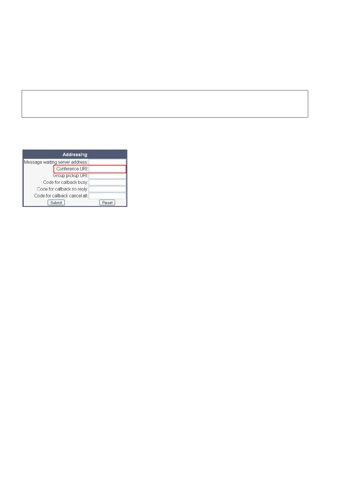 The Conference URI provides the number/URI used for system based conferences. This fea-