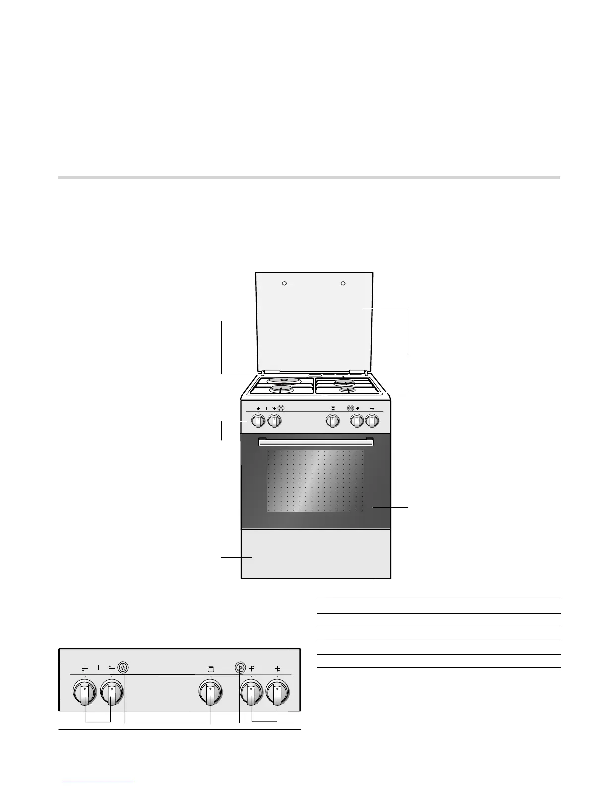 control panel, the hob and the individual operating controls.