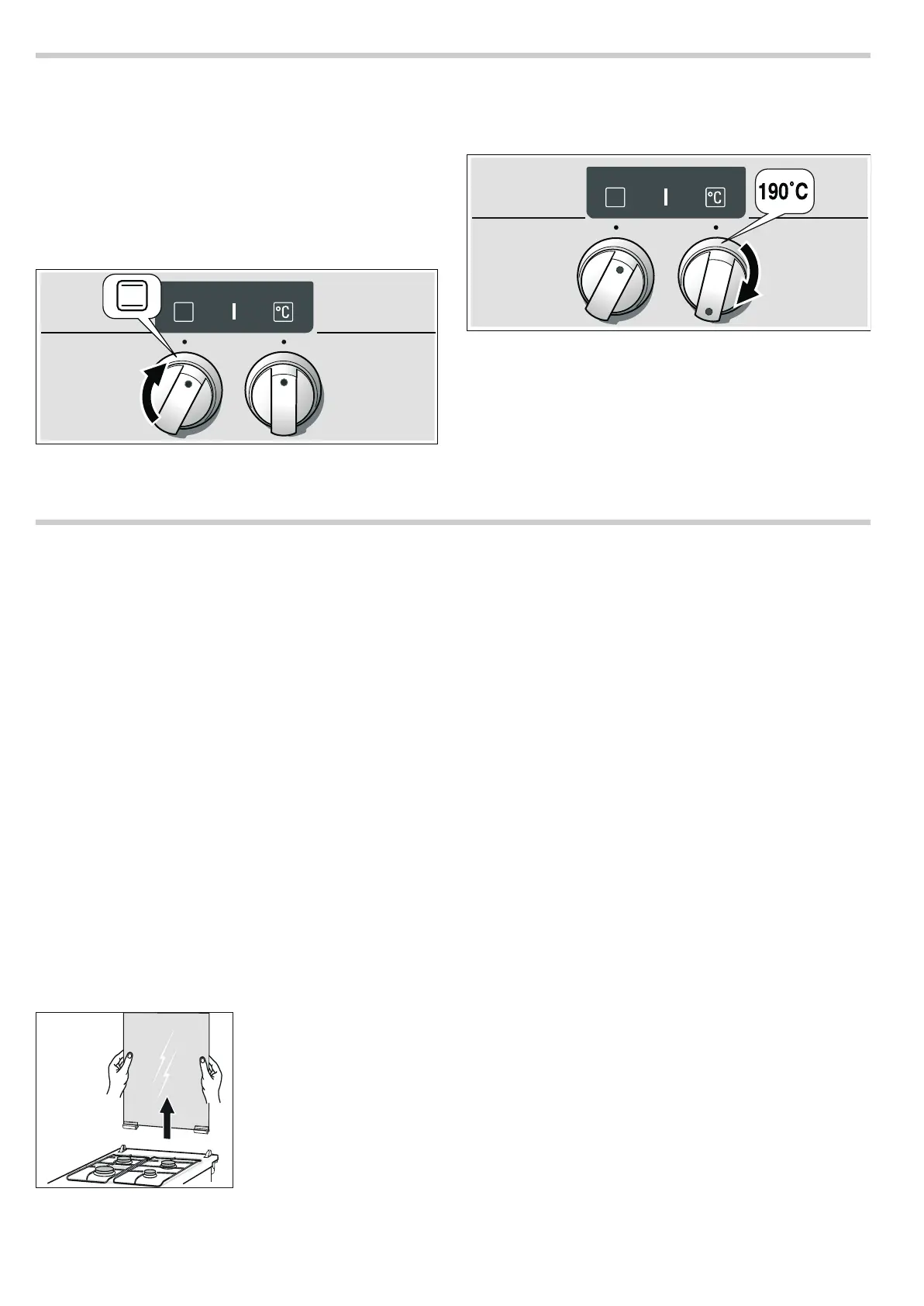 Voorbeeld op de afbeelding: 190 °C, boven-/onderwarmte %.