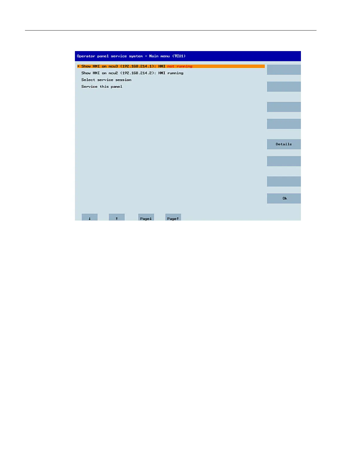 Figure 1-9 TCU menu: Main menu