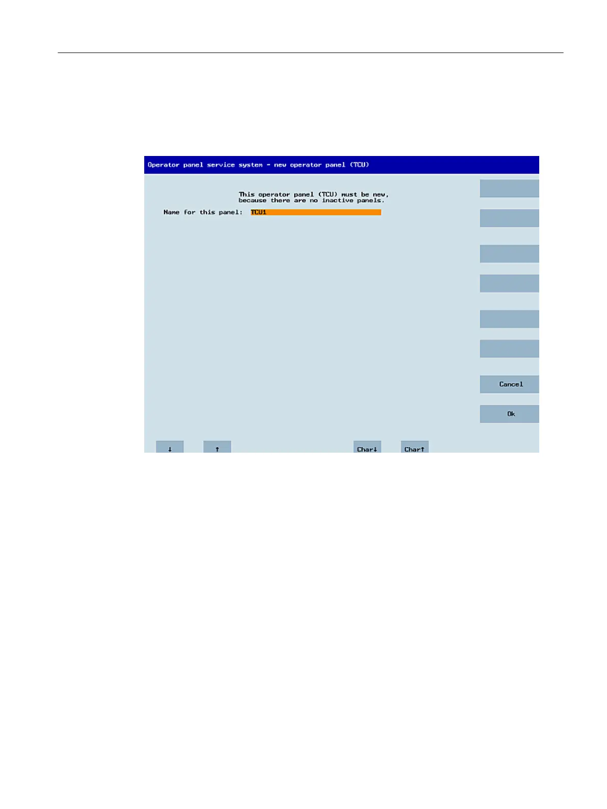will appear: "This operator panel (TCU) must be new, because there are no inactive panels."