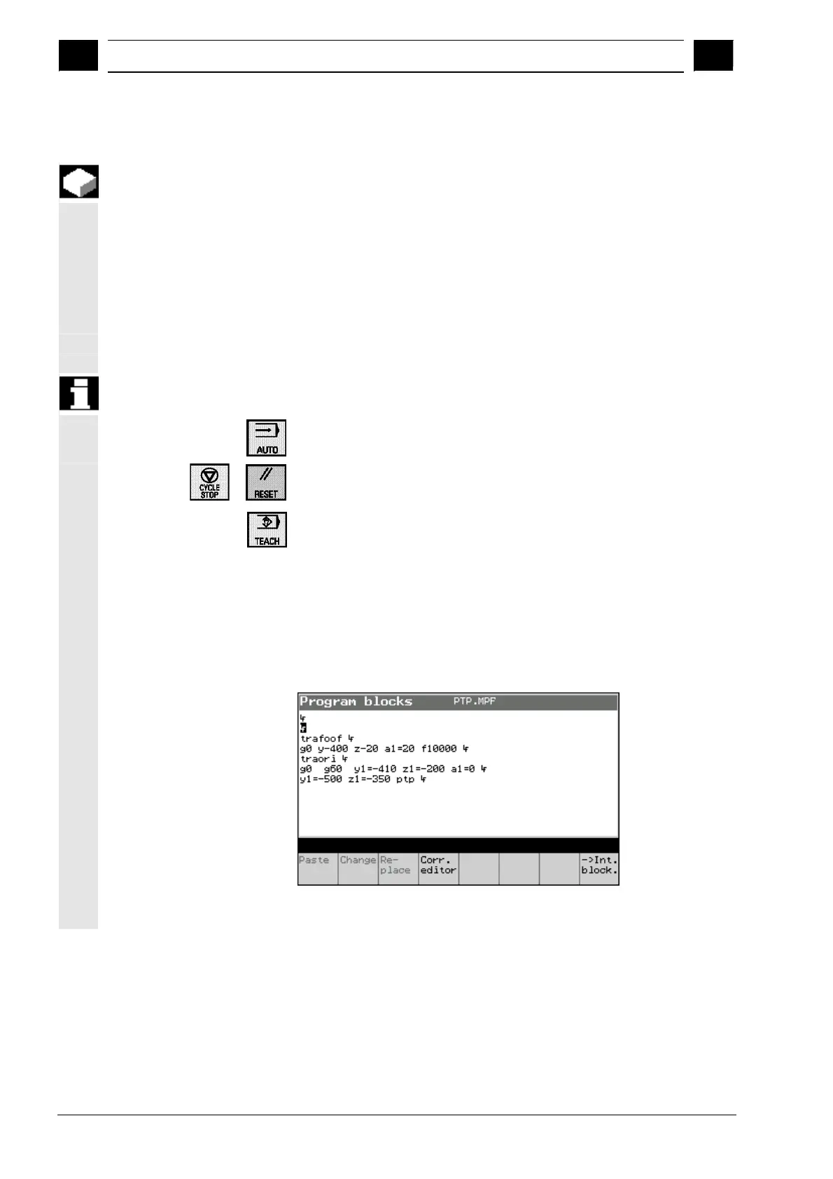 In the TEACH IN operating mode you can