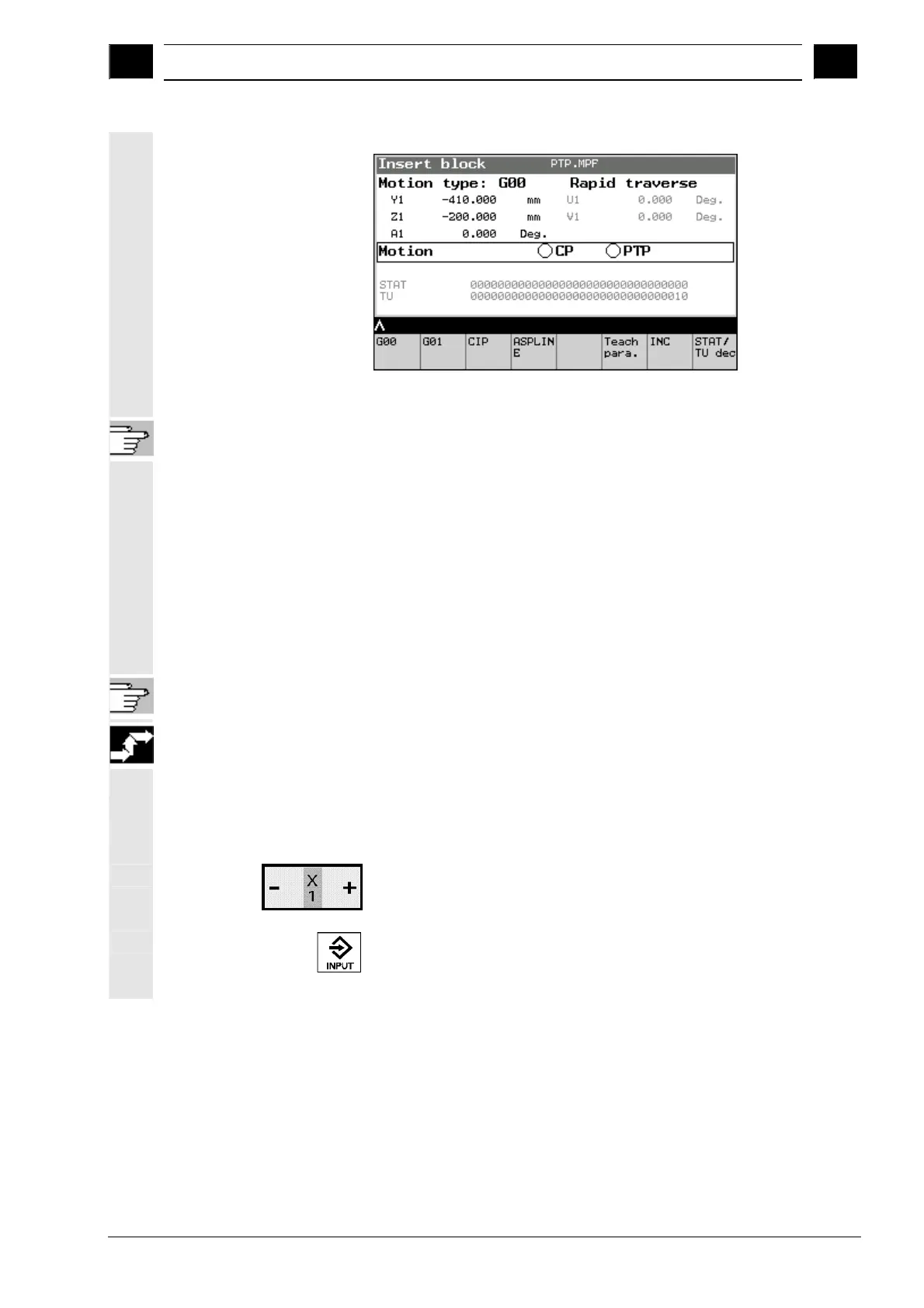 • Approach the point with the Jog keys,