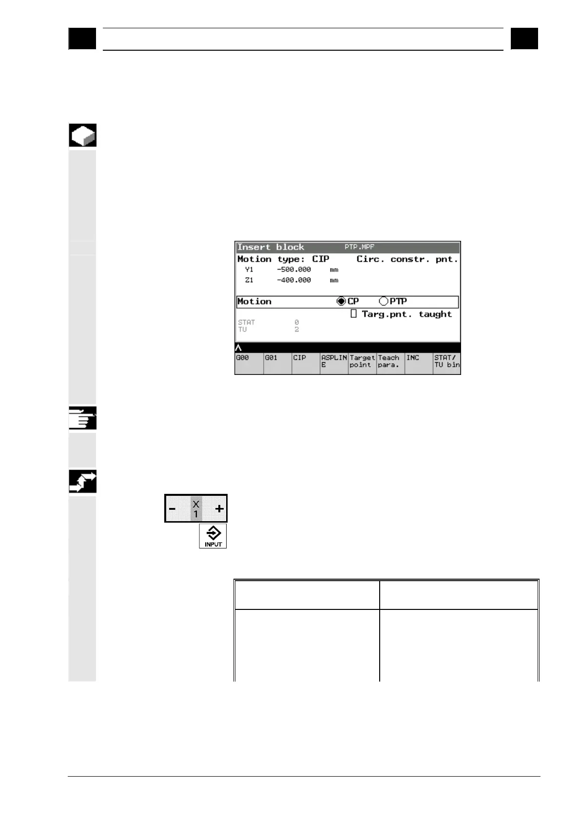 Circular blocks can also be taught-in. To do this, the auxiliary point