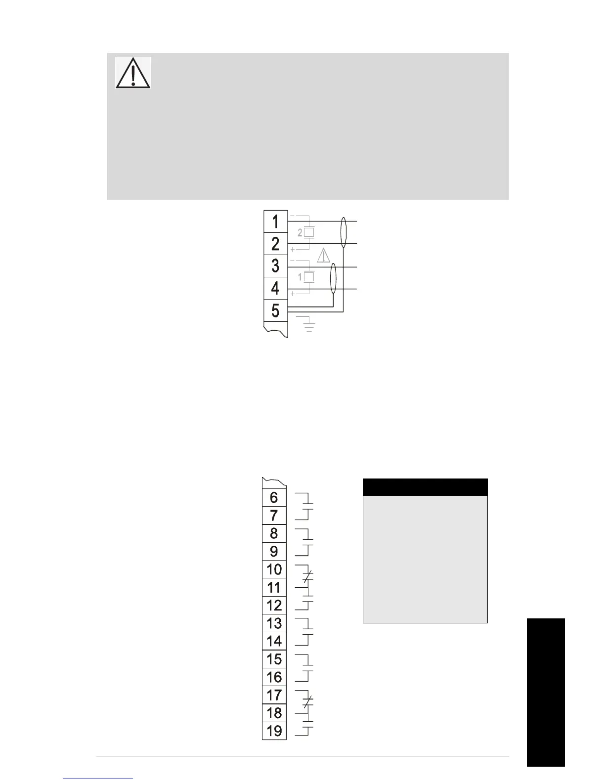 Warning: Hazardous voltage present on transducer terminals during