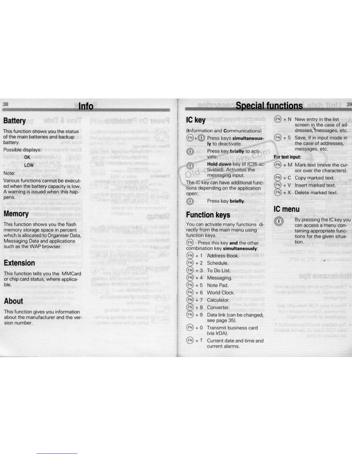 Siemens IC 35 - Info; Battery; IC Key; Function Keys
