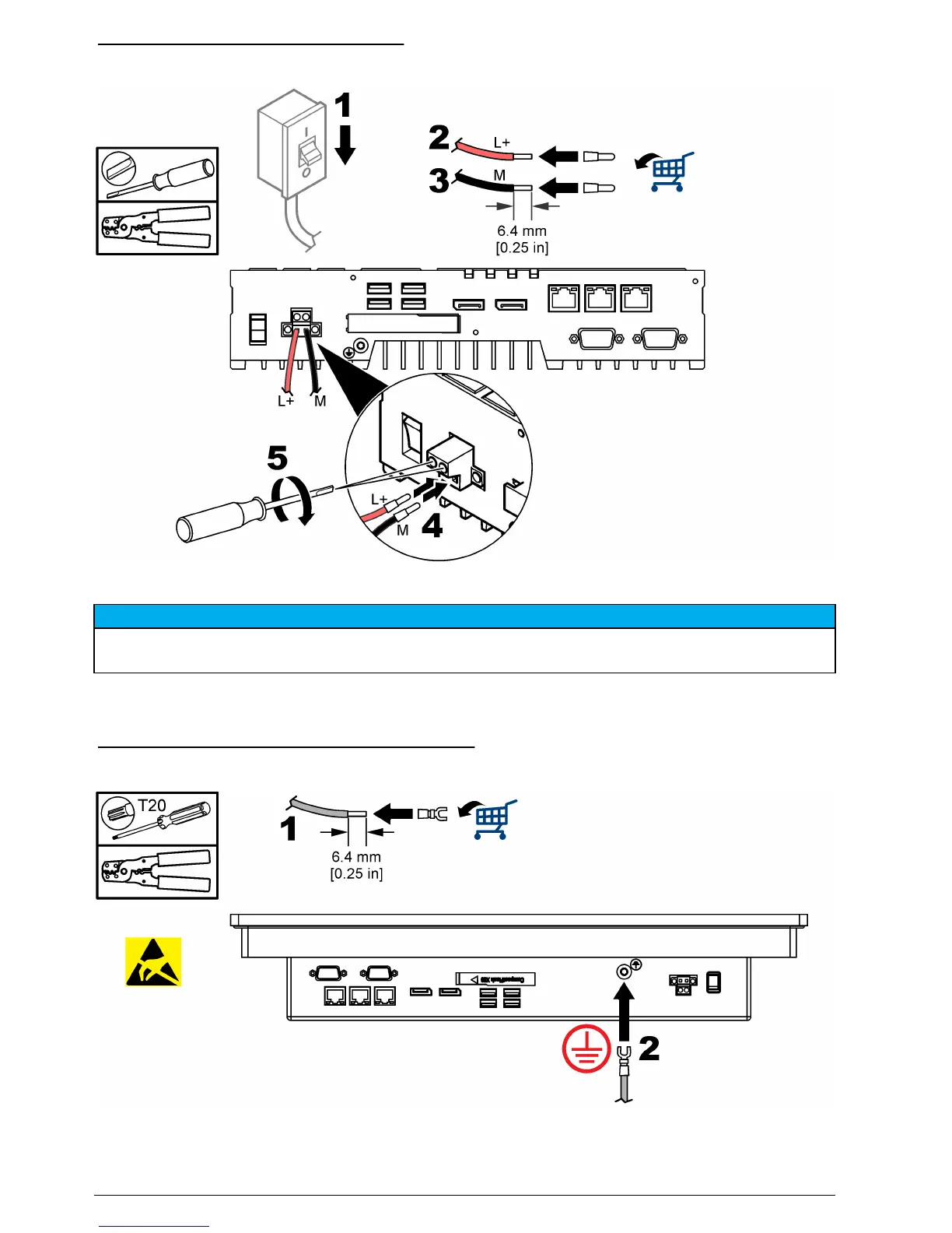 gereksinimlerini karşılayan bir 24 VDC güç kaynağına takın. Cihazı koruyucu topraklamaya