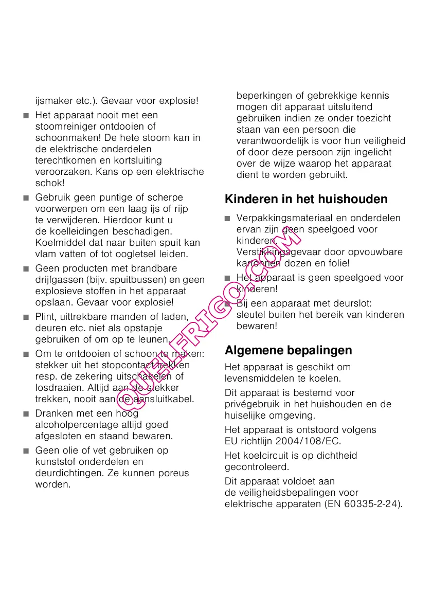 ijsmaker etc.). Gevaar voor explosie!