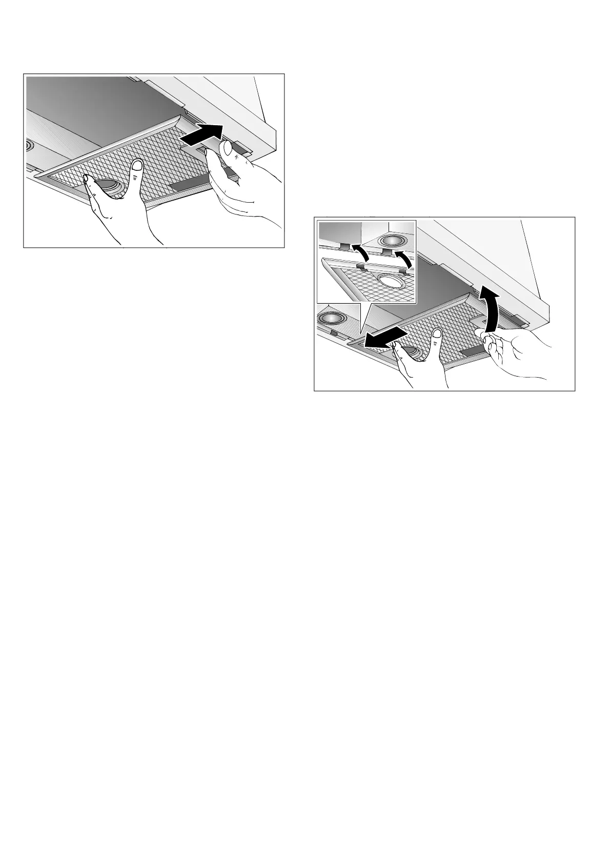 – Hold the metal grease filter level to prevent fat
