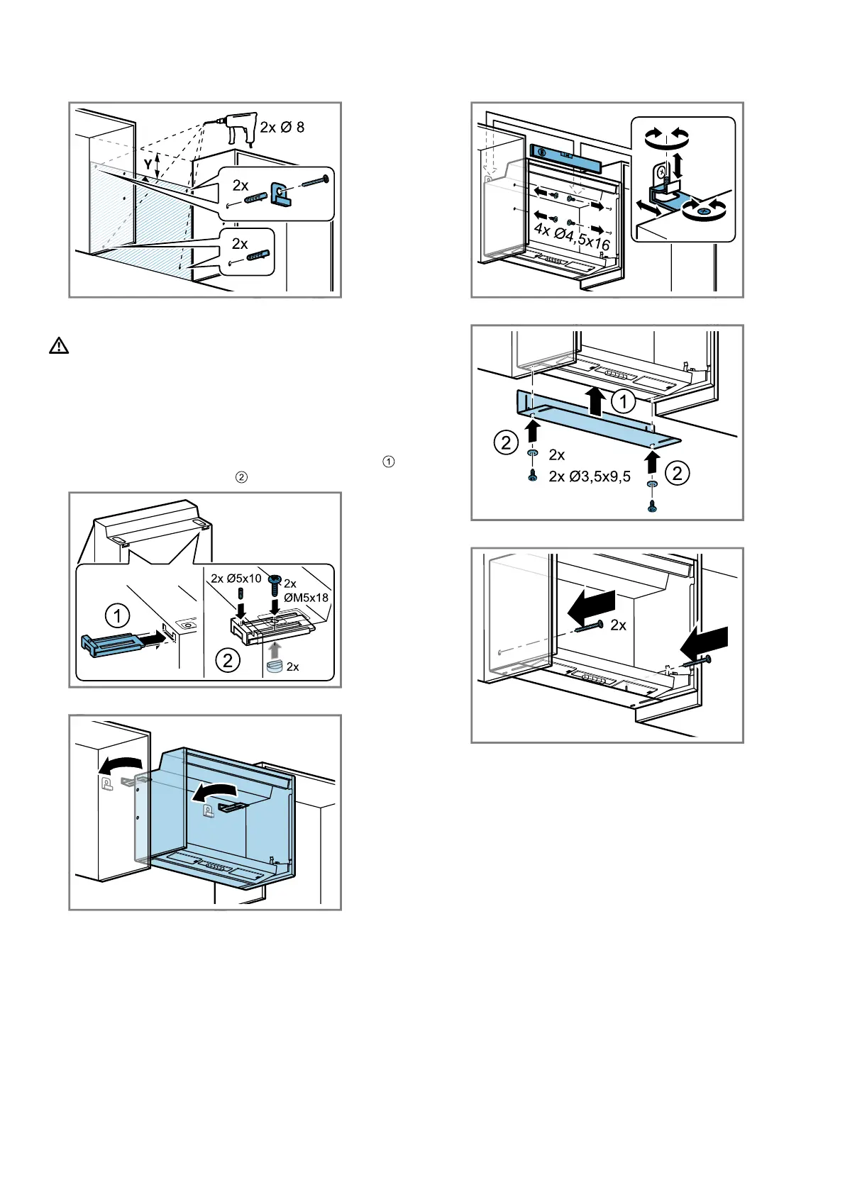Align the appliance horizontally using threaded pins.