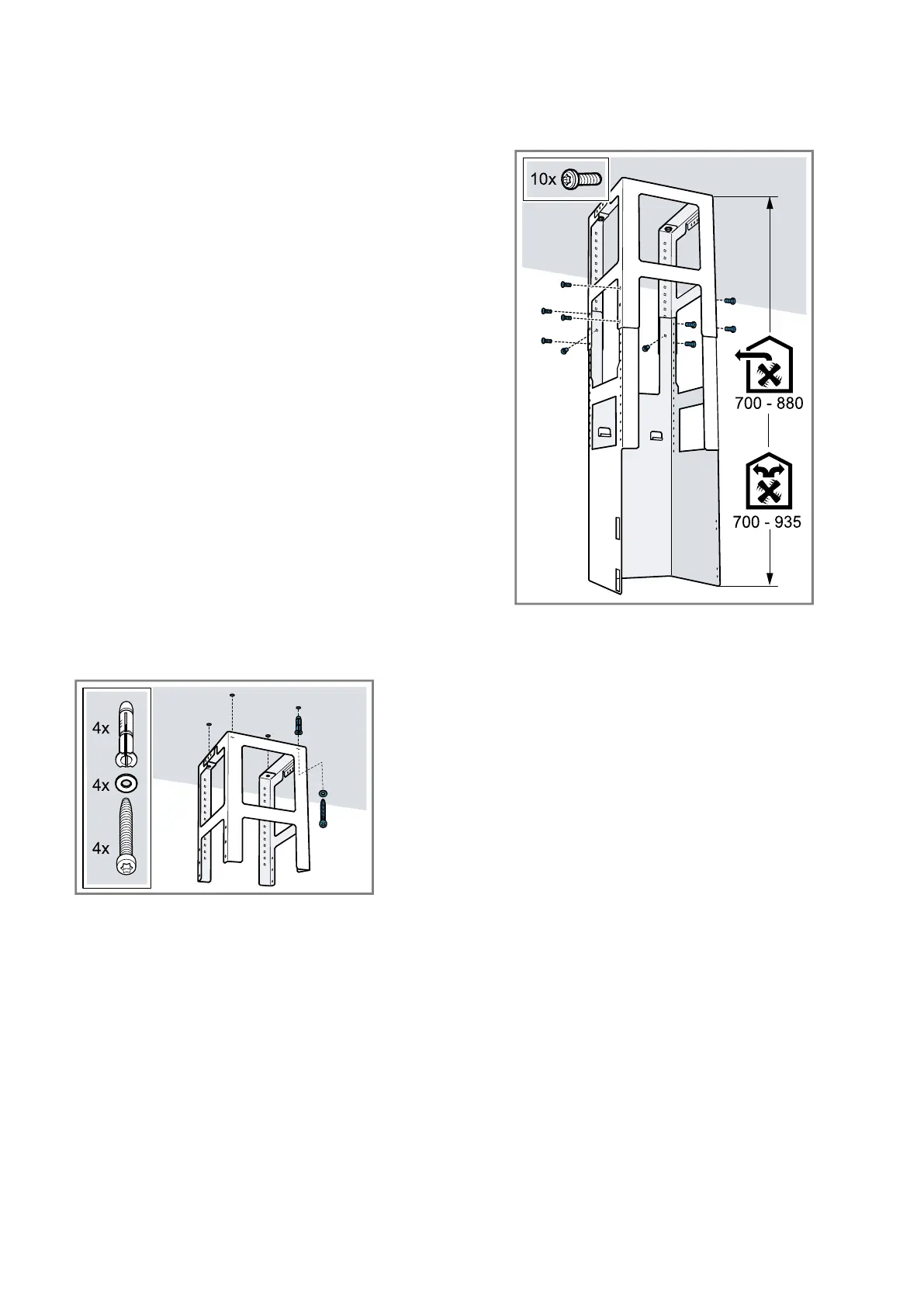 frame at the specified total height using 10 screws.