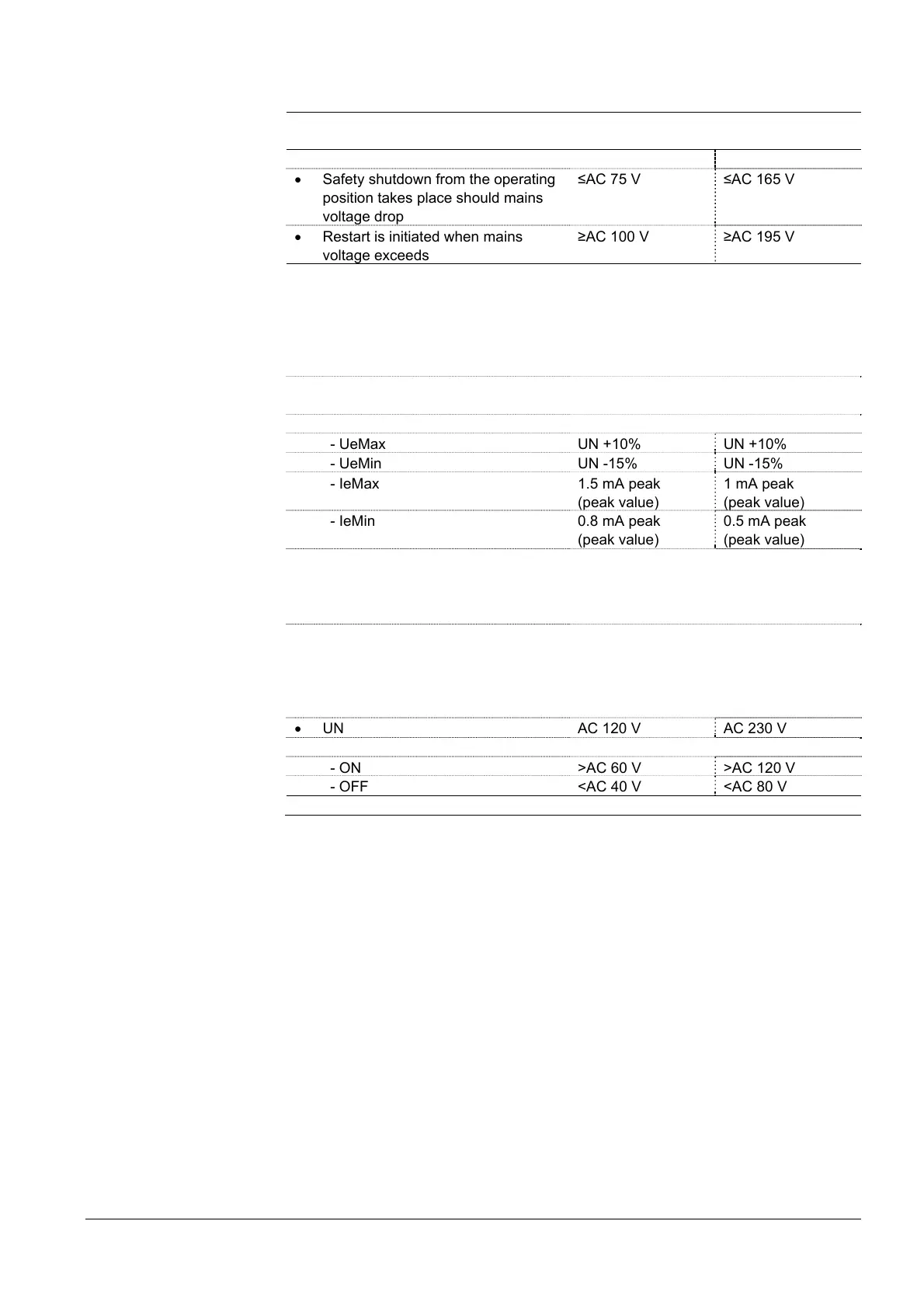 Under voltage UMains 120 V UMains 230 V