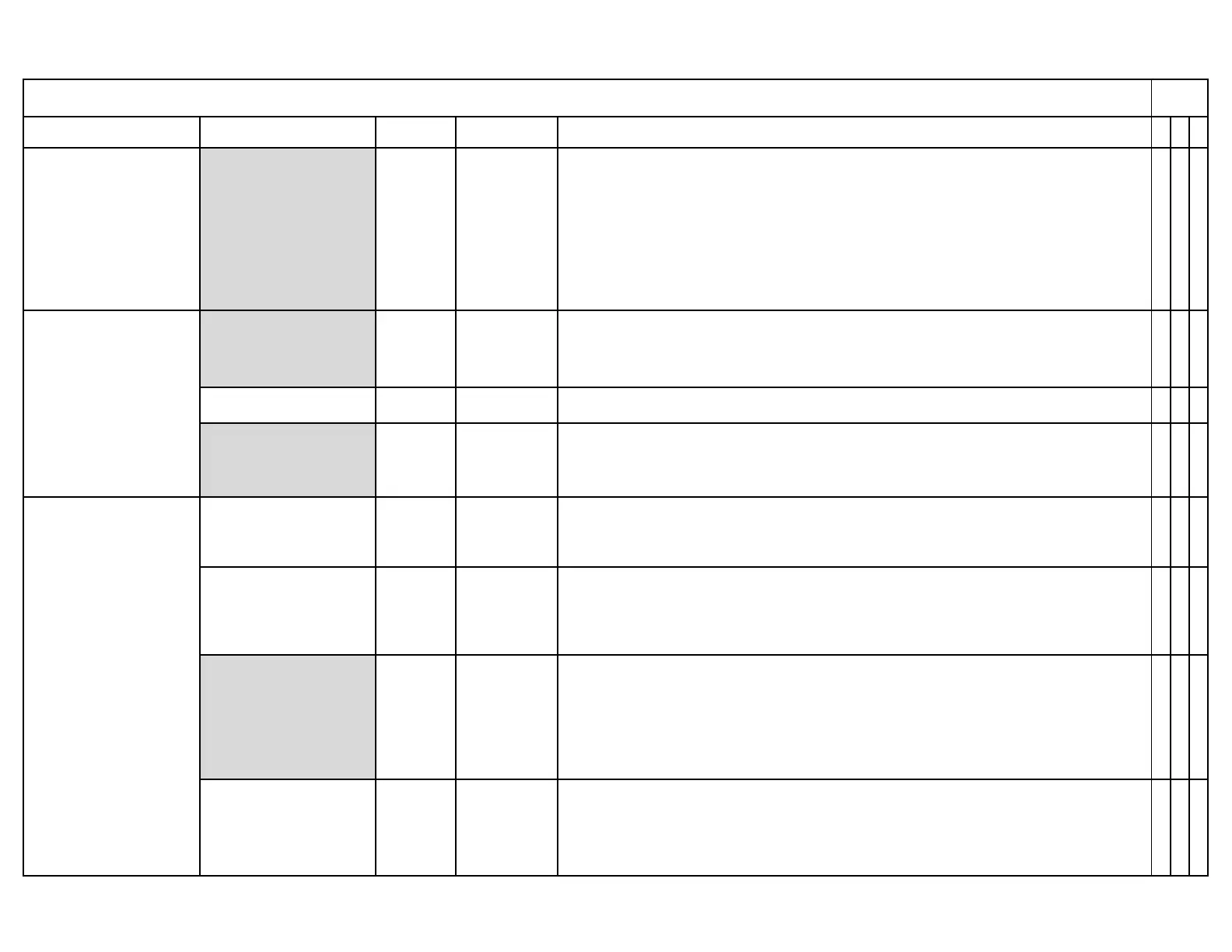 LEGEND - Password Access: (U)=User, (S)=Service, (O)=OEM, Shaded = Commonly Used, ** = Must Set, X = Has Function, / = Partial Function