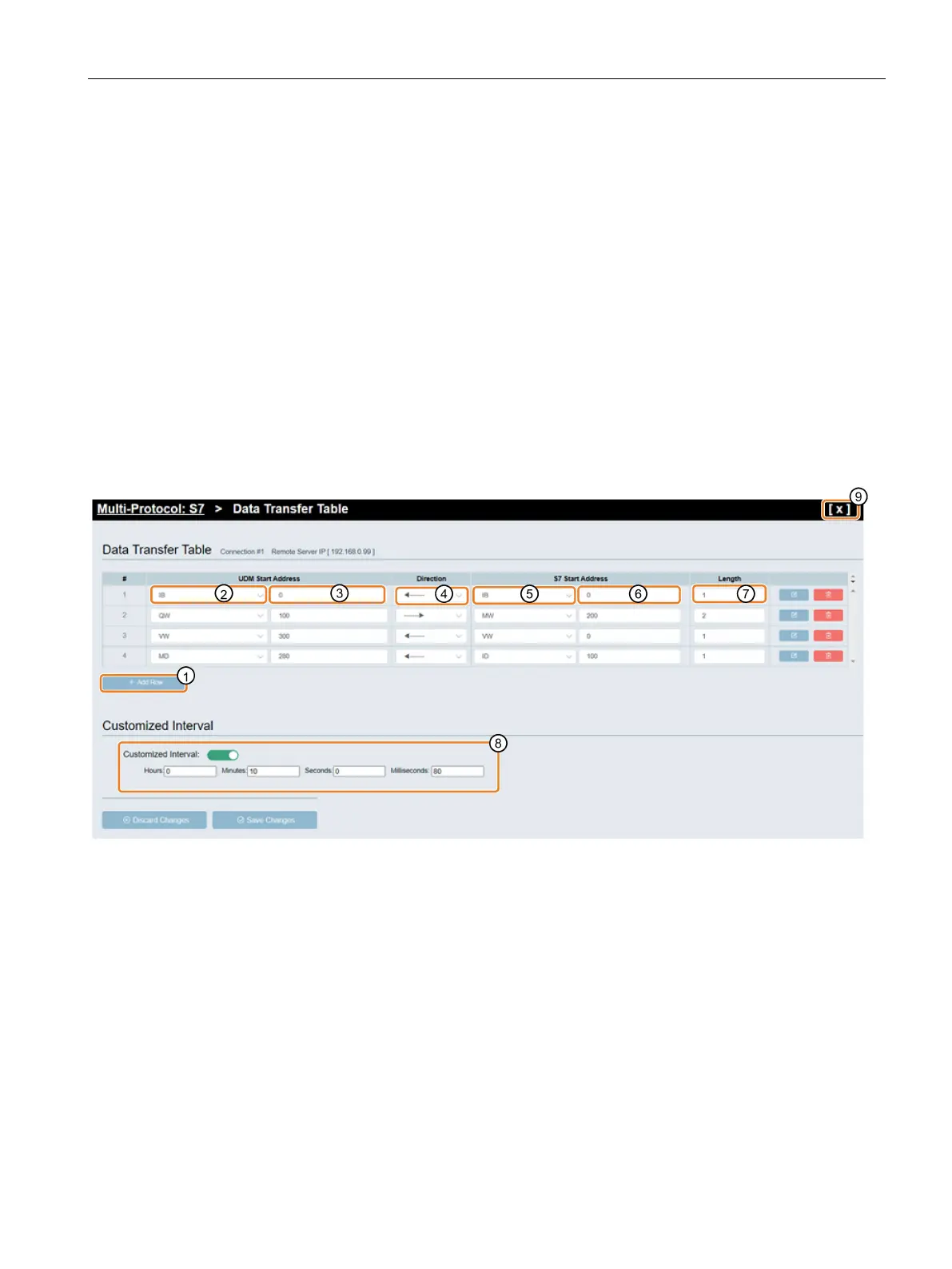 6. Input the S7 Start address of the remote S7 server ⑥.