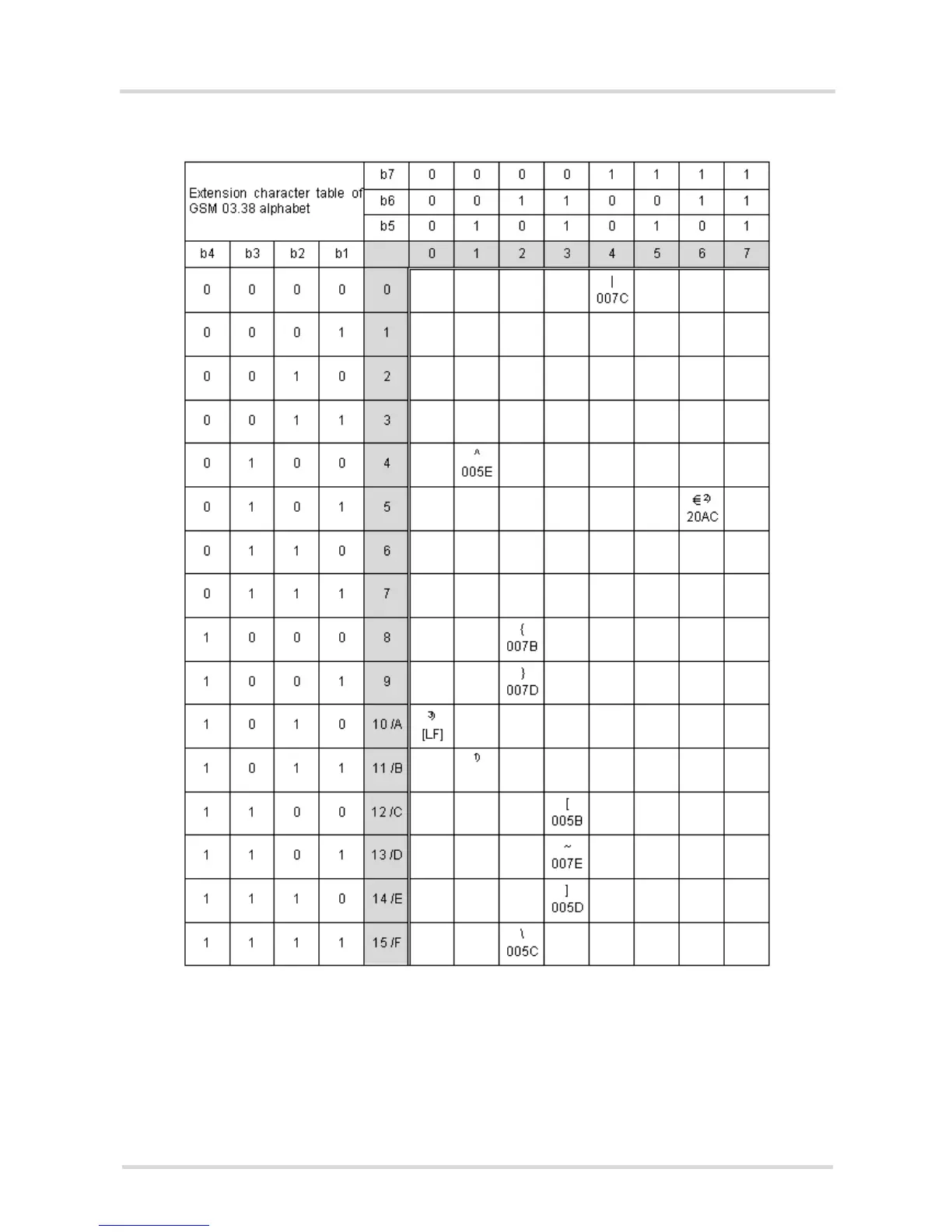 Figure 1.2: Extension character table of GSM 03.38 alphabet