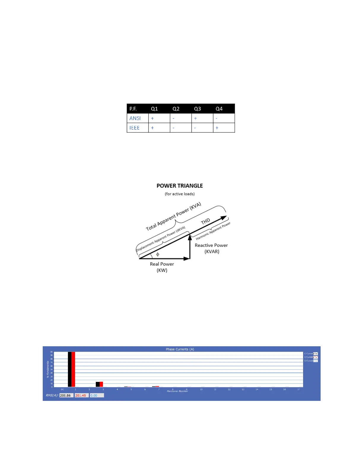 power itself. In the ANSI convention a “+” PF indicates a lagging current (inductive load) while a “–“ PF