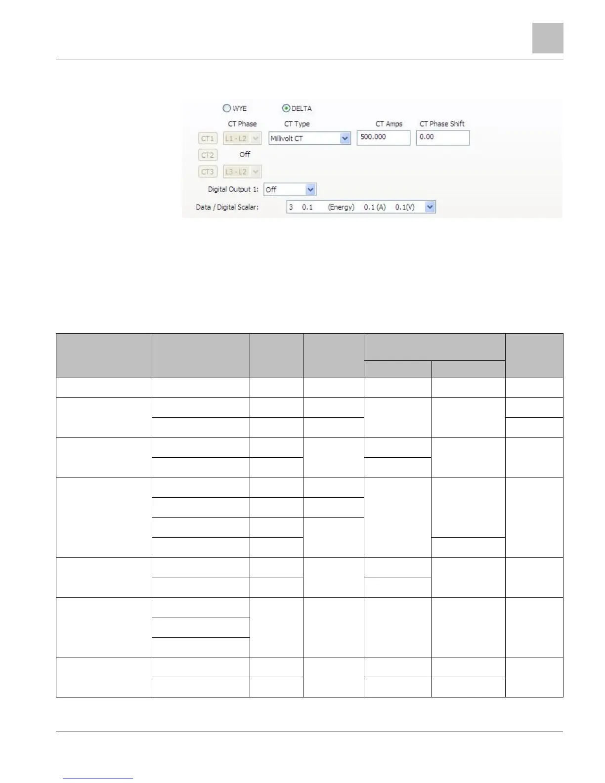 A DELTA connection displays only the two available CTs. Any changes made to CT1