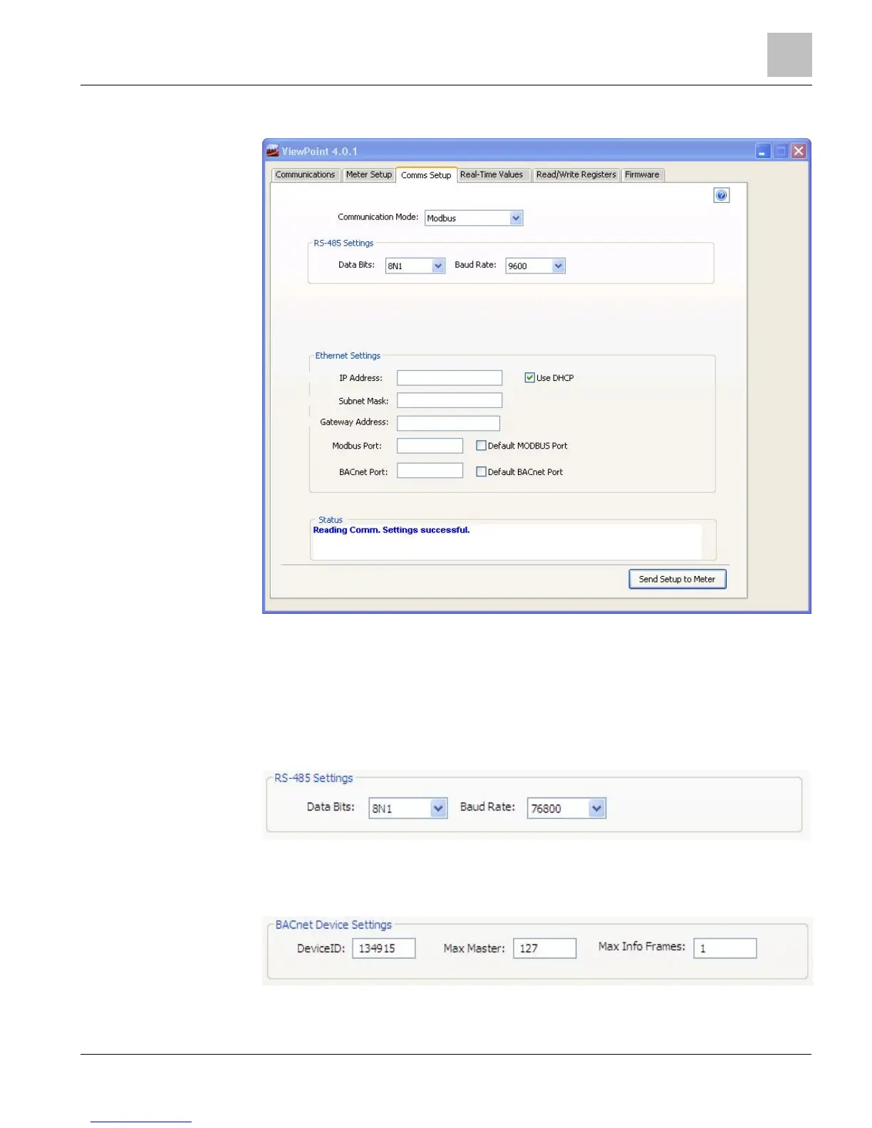 Change the Data Bits or Baud Rate on the meter by using these fields.