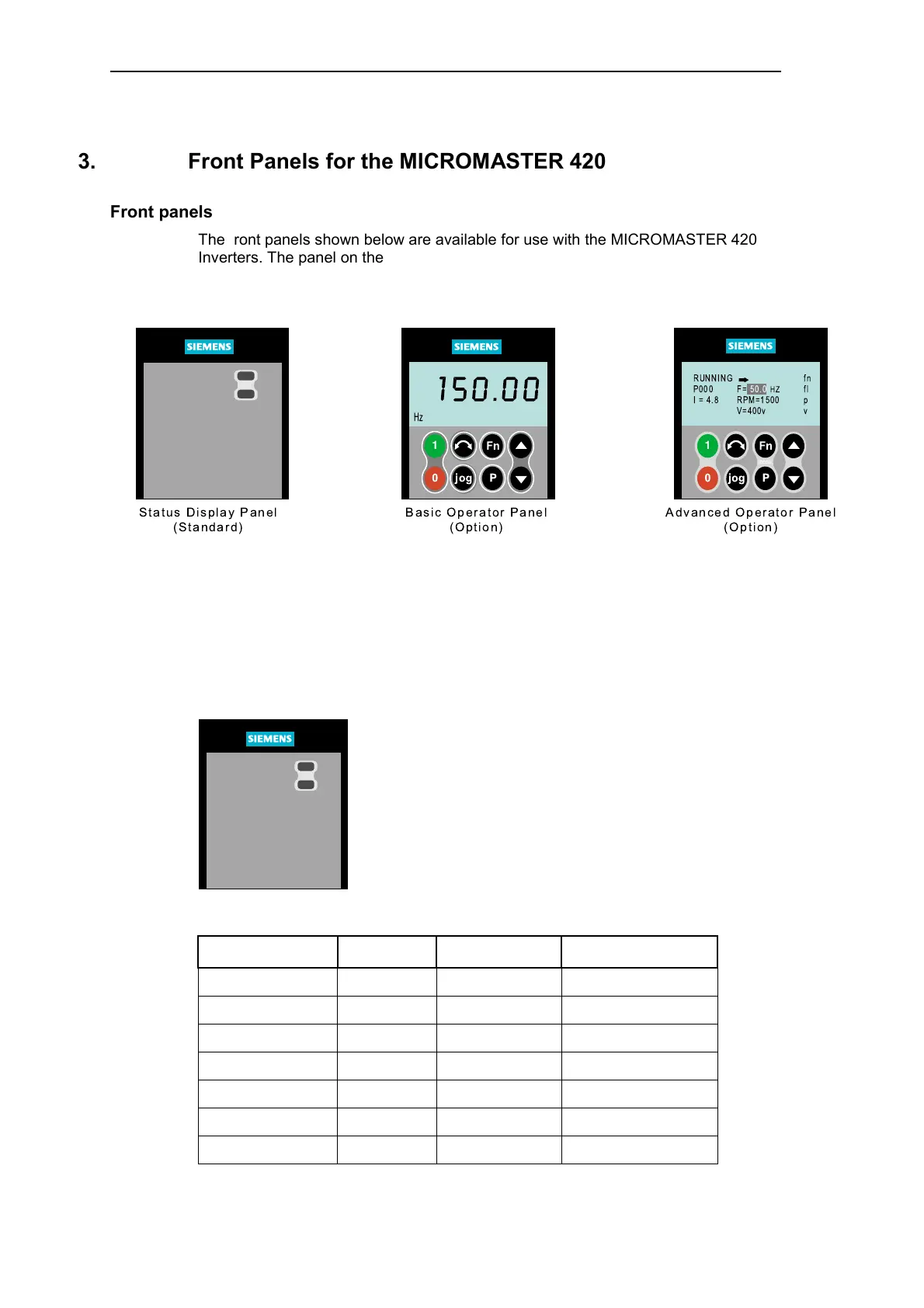 Figure 3-1 Panels available for the MICROMASTER 420 Inverter