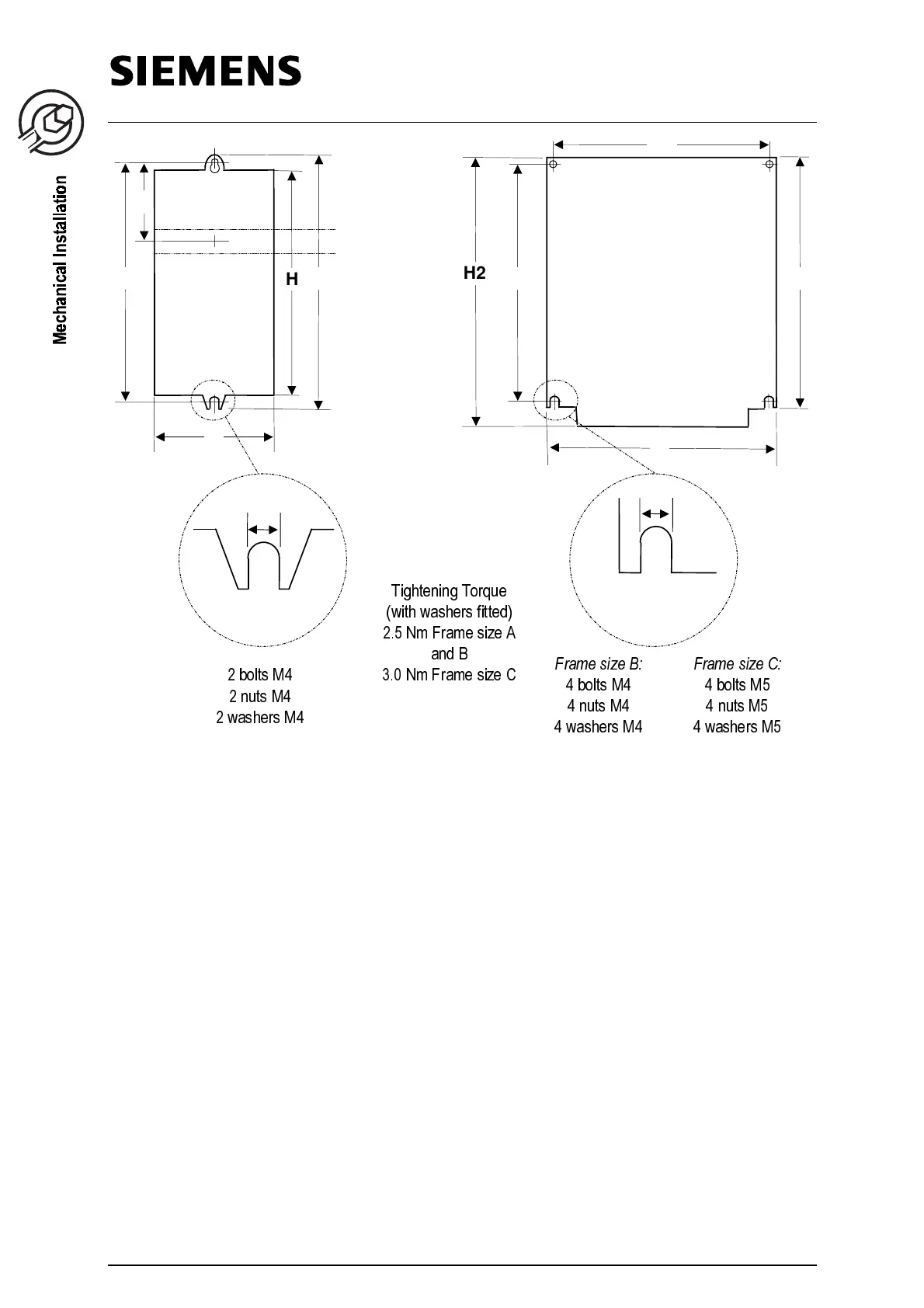 Frame Size A Frame Sizes B and C