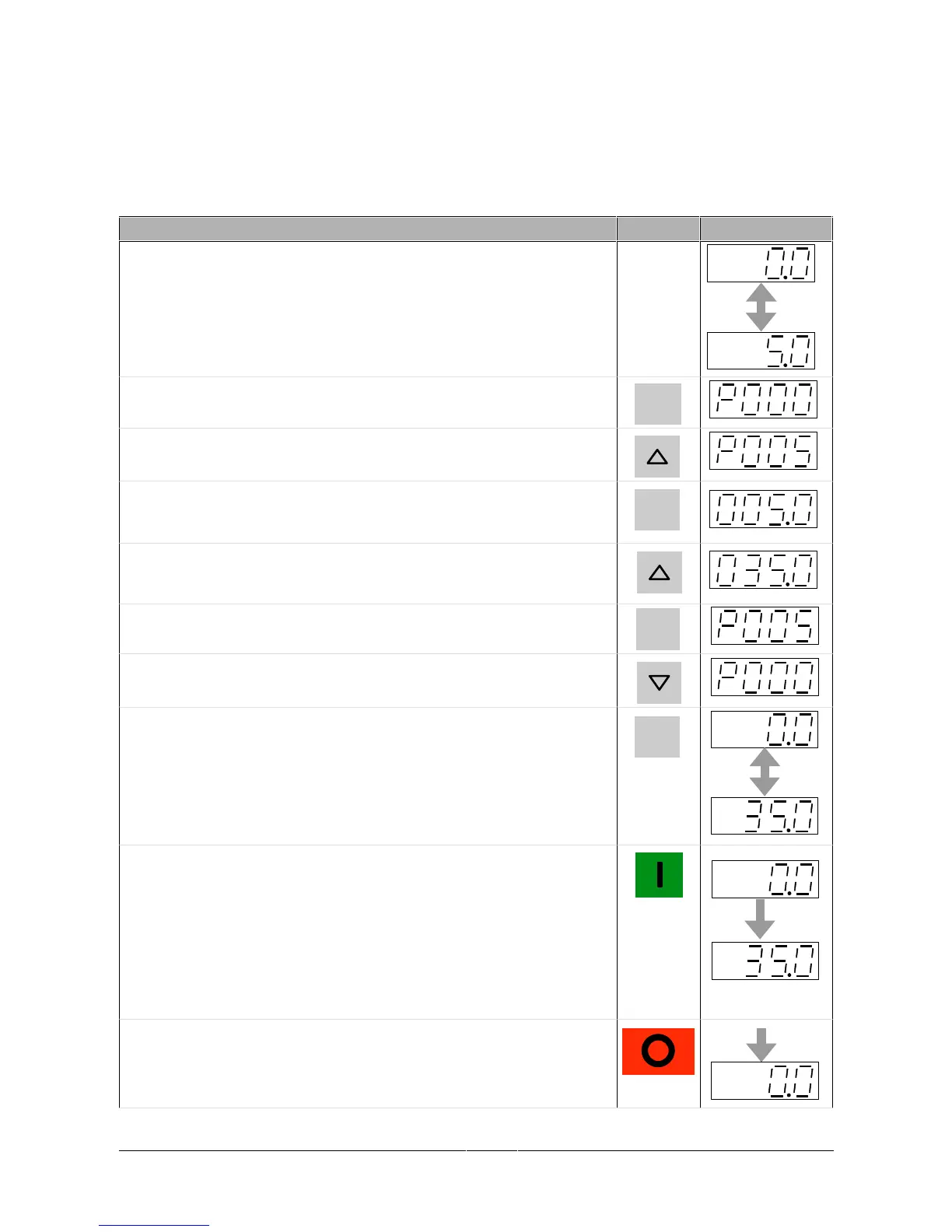 4. Press P to display the current frequency setpoint (5 Hz is the factory