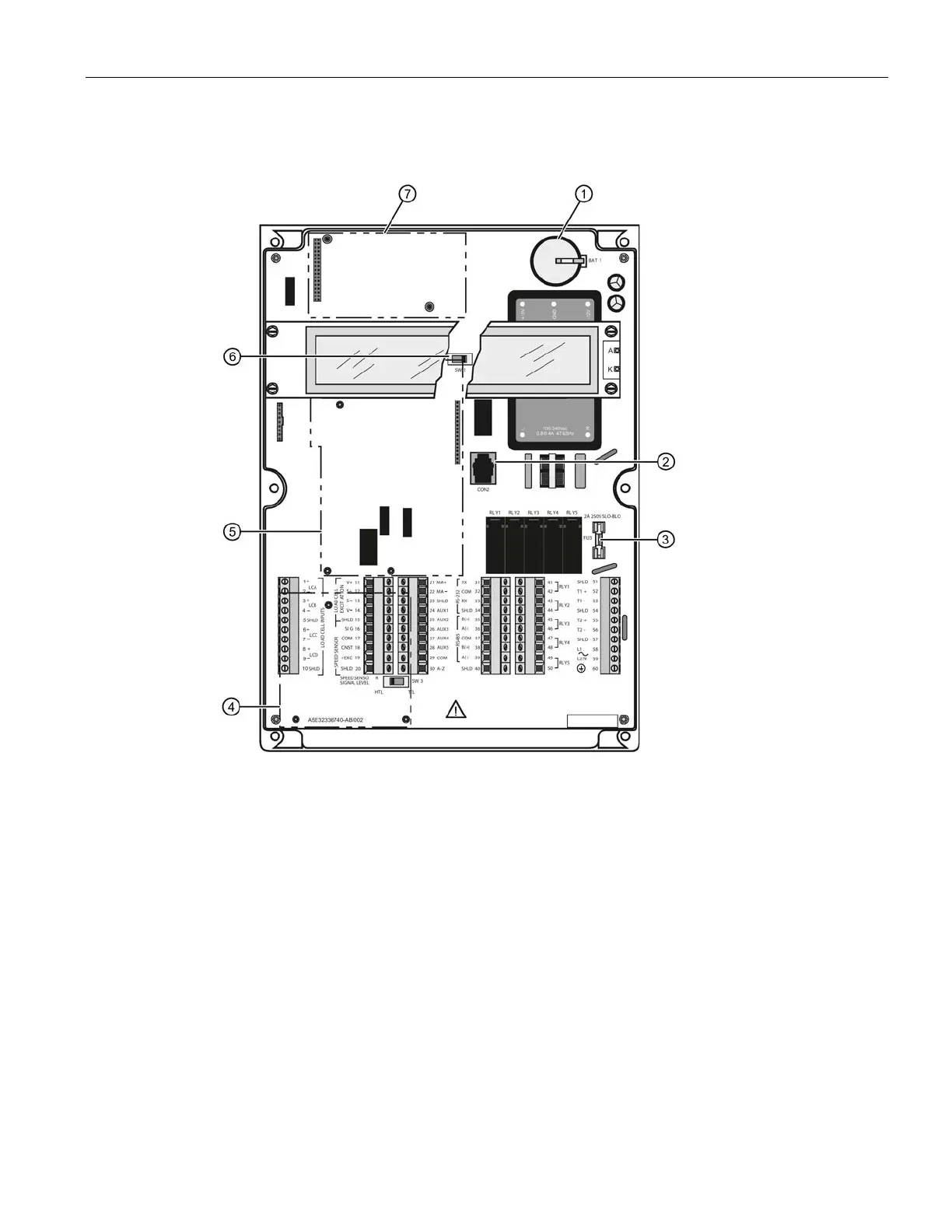 The LVDT card must be removed to access terminals below it.