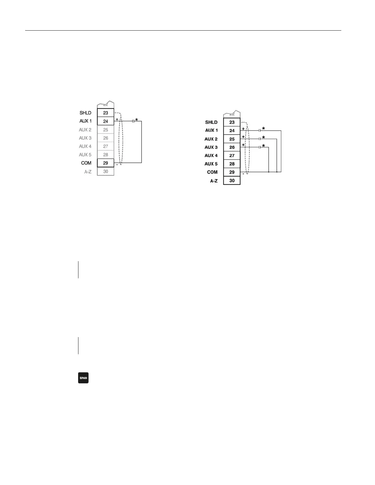 To use remote span selection, auxilliary Inputs, 1 and/or 2 or 3, are programmed to read the