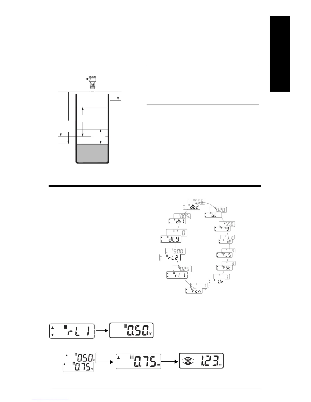 change value (eg. increase to 0.75 m) new value (eg. new setpoint 0.75 m) after 6 sec. delay, return to run mode