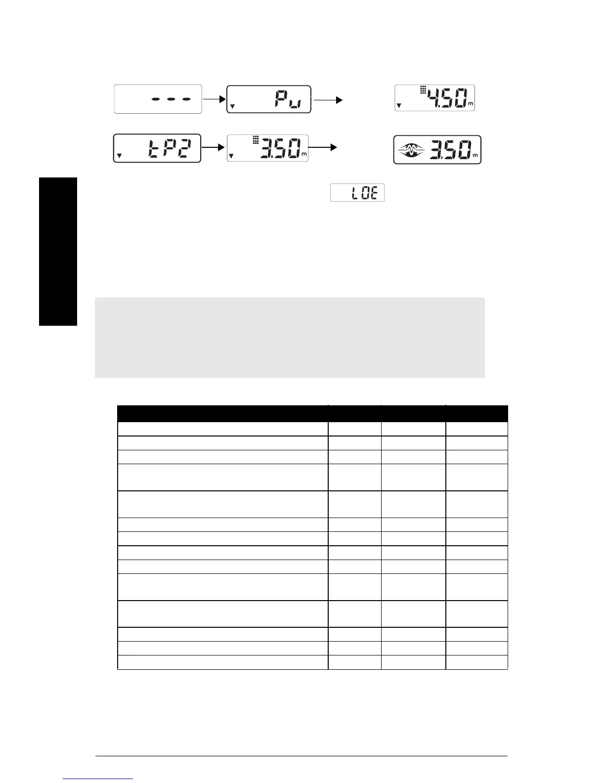 • Samtlige niveausætpunkter skal ligge inden for apparatets måleområde (3 m for