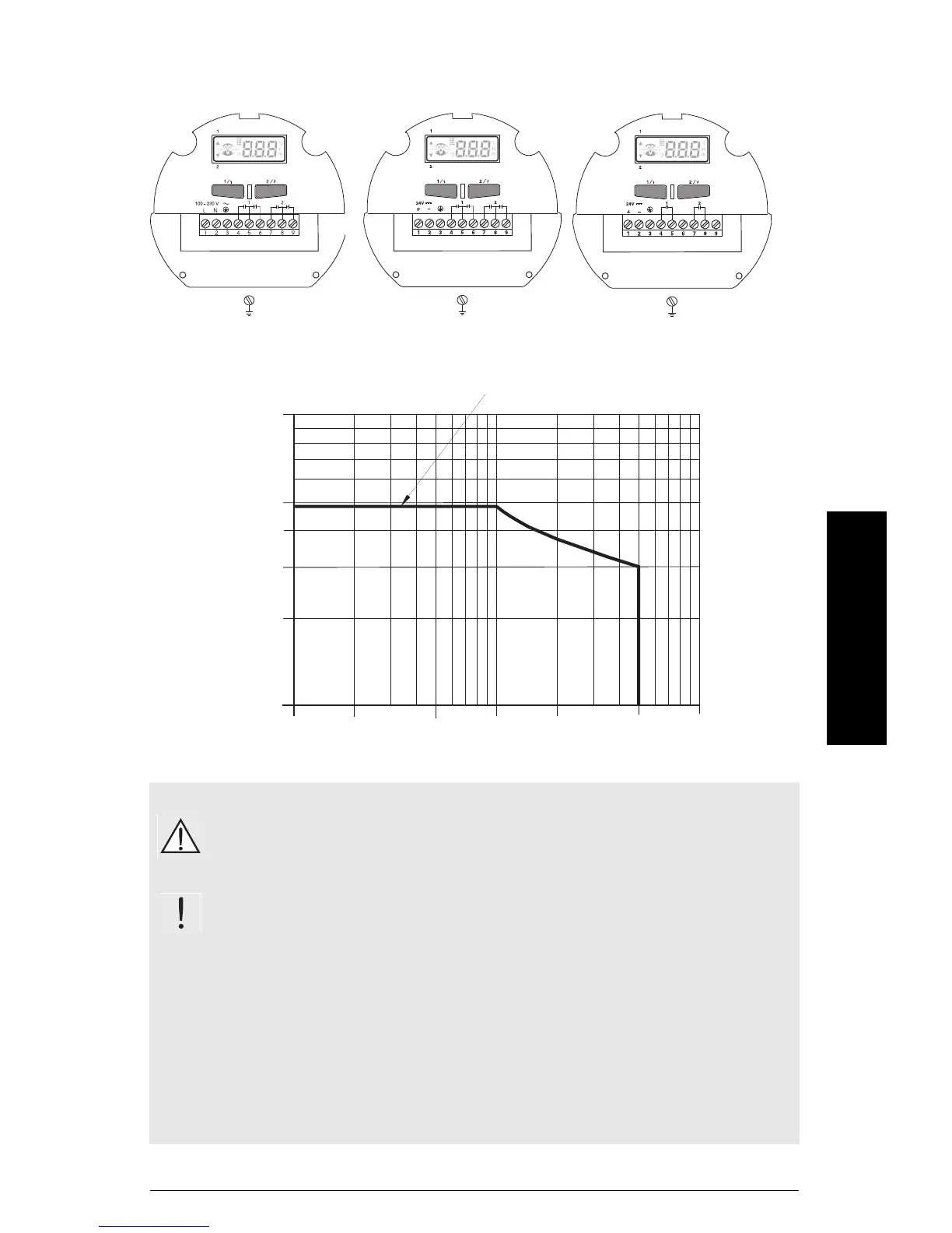 • Die Relaiskontaktklemmen müssen mit Geräten verwendet werden, die keine frei