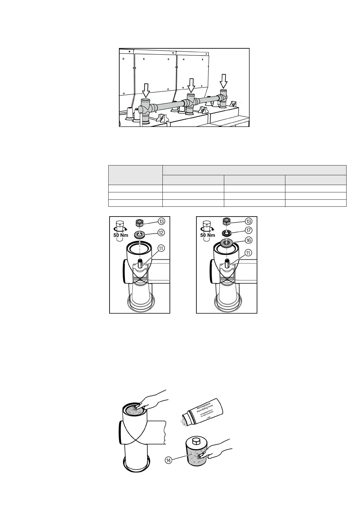 upwards) and the hexagon nut M12 ⑬ (tightening torque: 50 Nm).