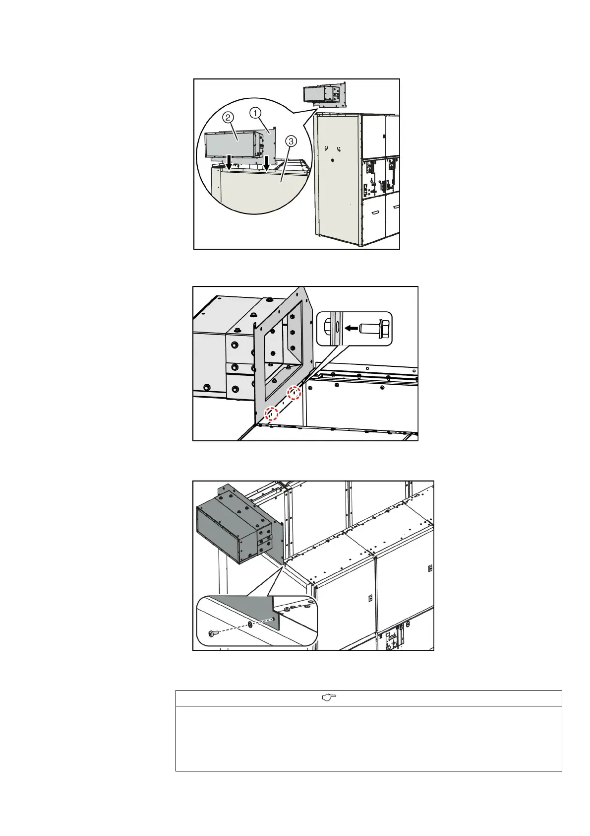 ➭ Bolt the side plate laterally together with the rear wall of the low-voltage compartment