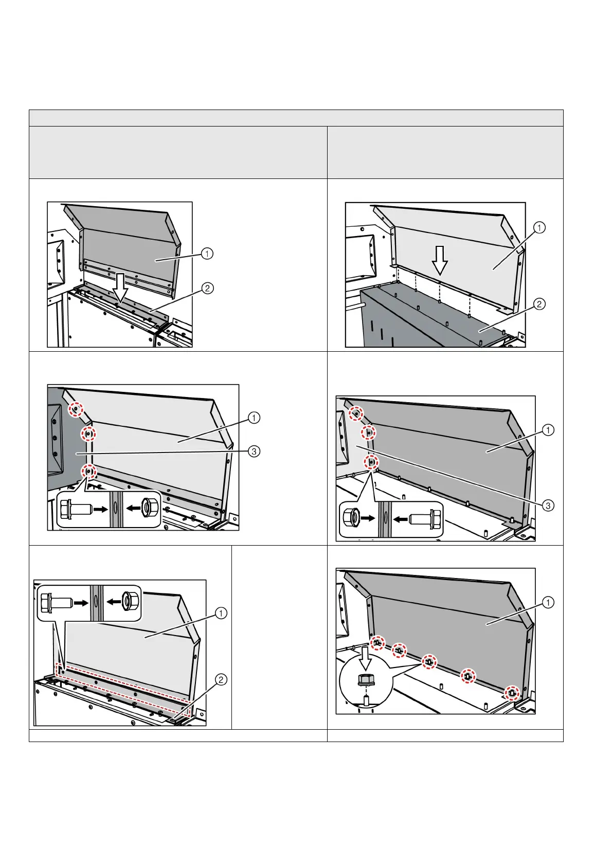 ➭ Bolt the rear wall ① together with the side plate ③ or another rear wall using