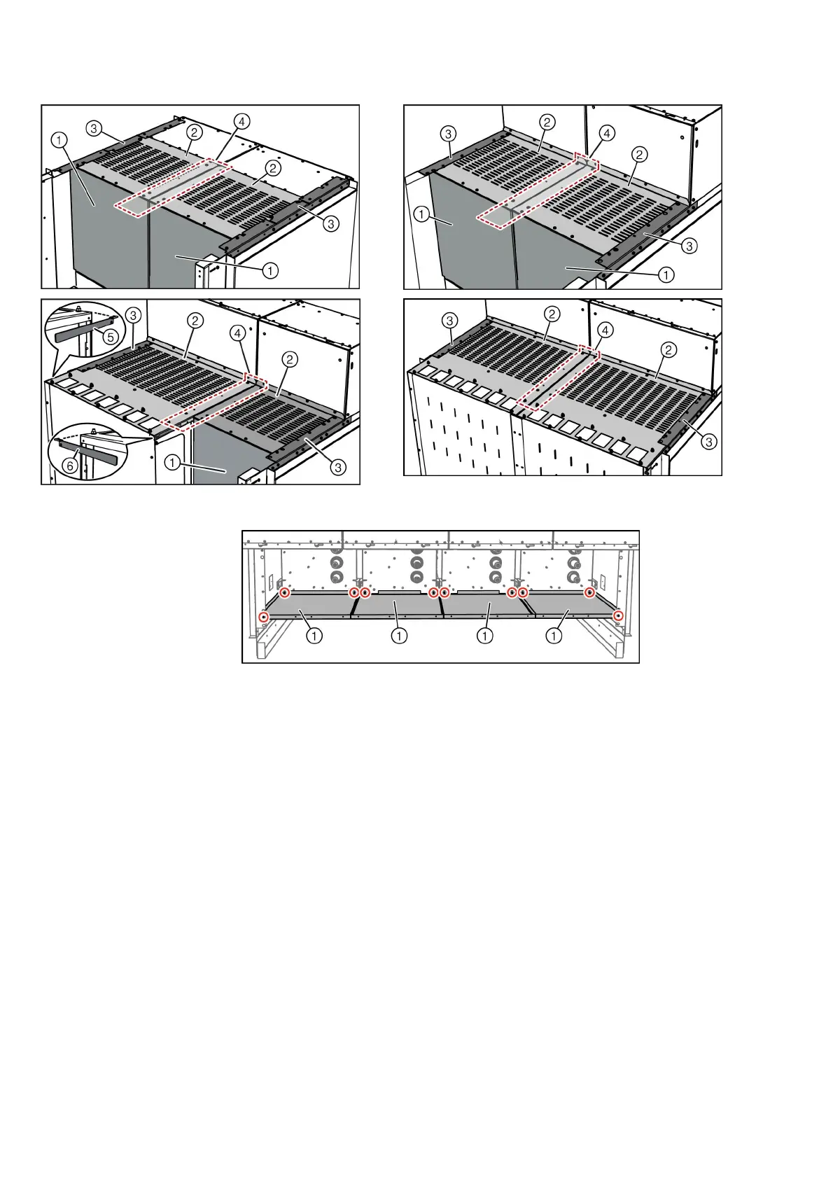 ➭ Panel version 31.5 kA: Bolt the reinforcing plate ④ together with the covers.