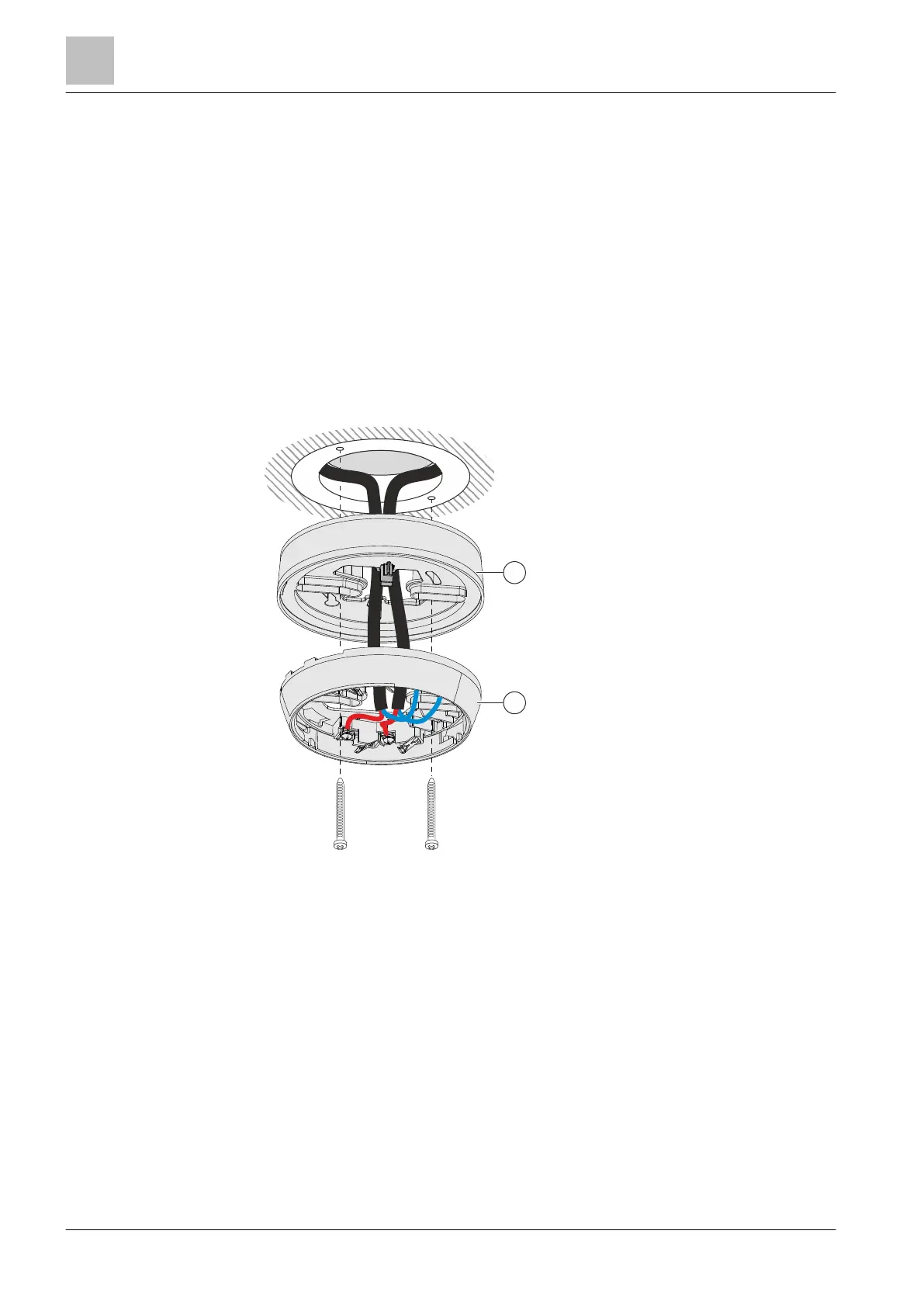 2. Install the base attachment BA720 (1) on the ceiling together with a detector
