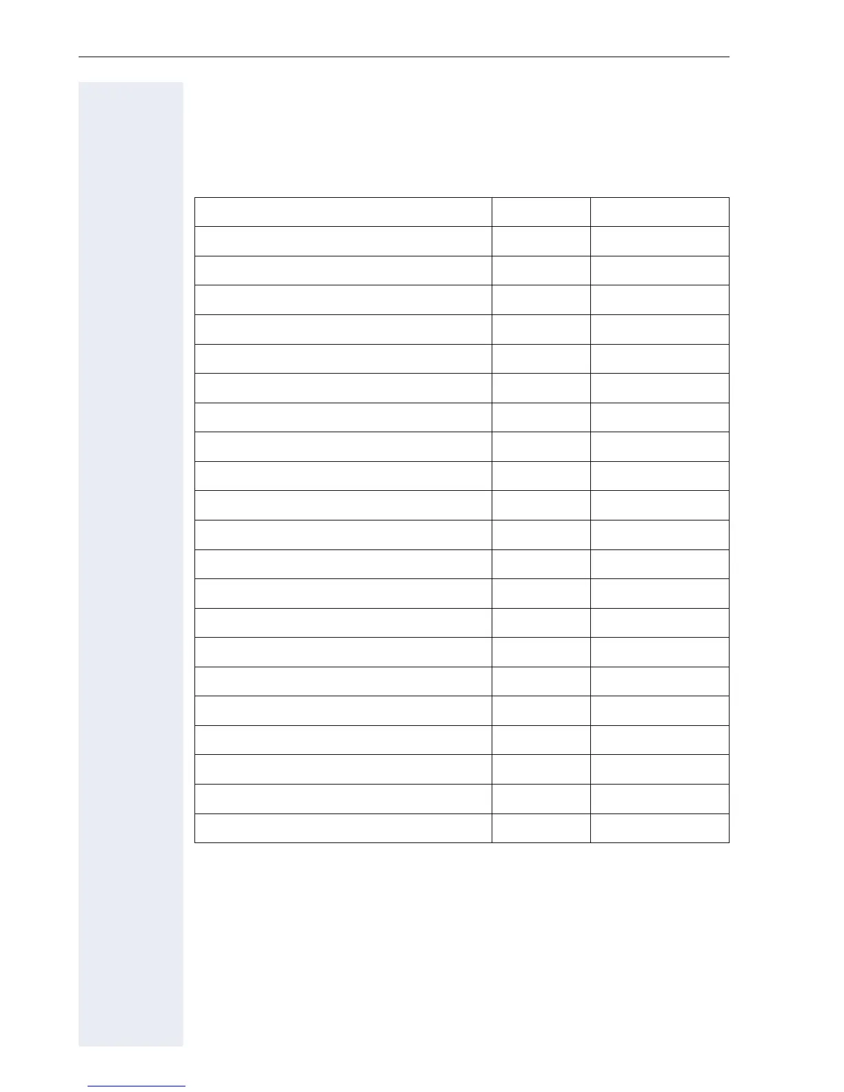 Access Code table for HiPath 8000 functions