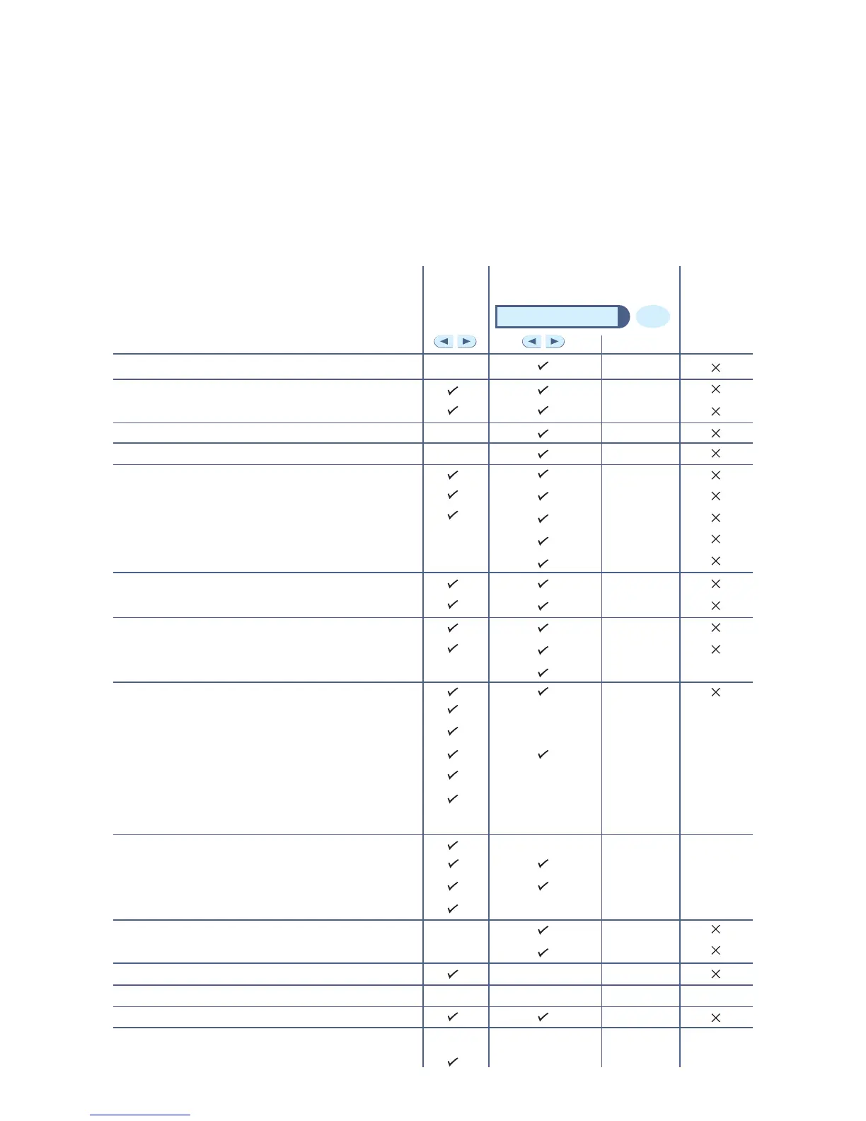 The table below lists all available functions as they appear on the display. Functions that have
