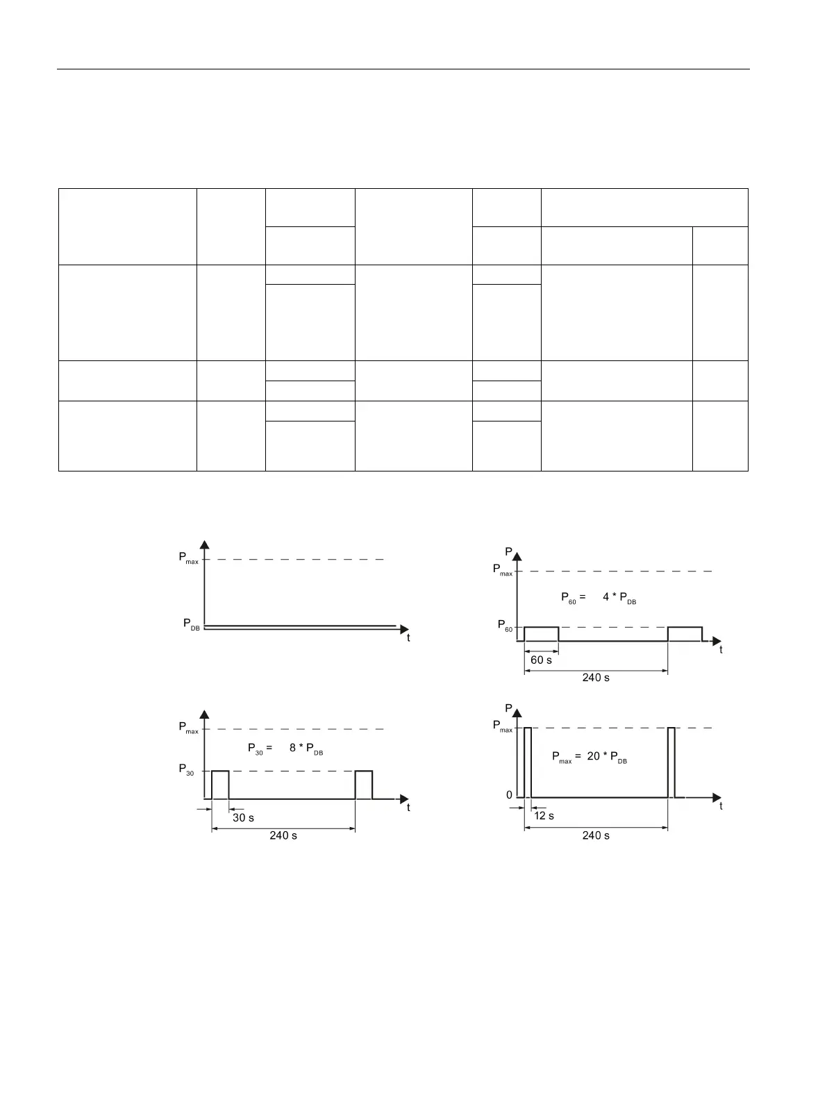 Figure 8-7 Pulse power, rated power and duty cycle examples for the braking resistor