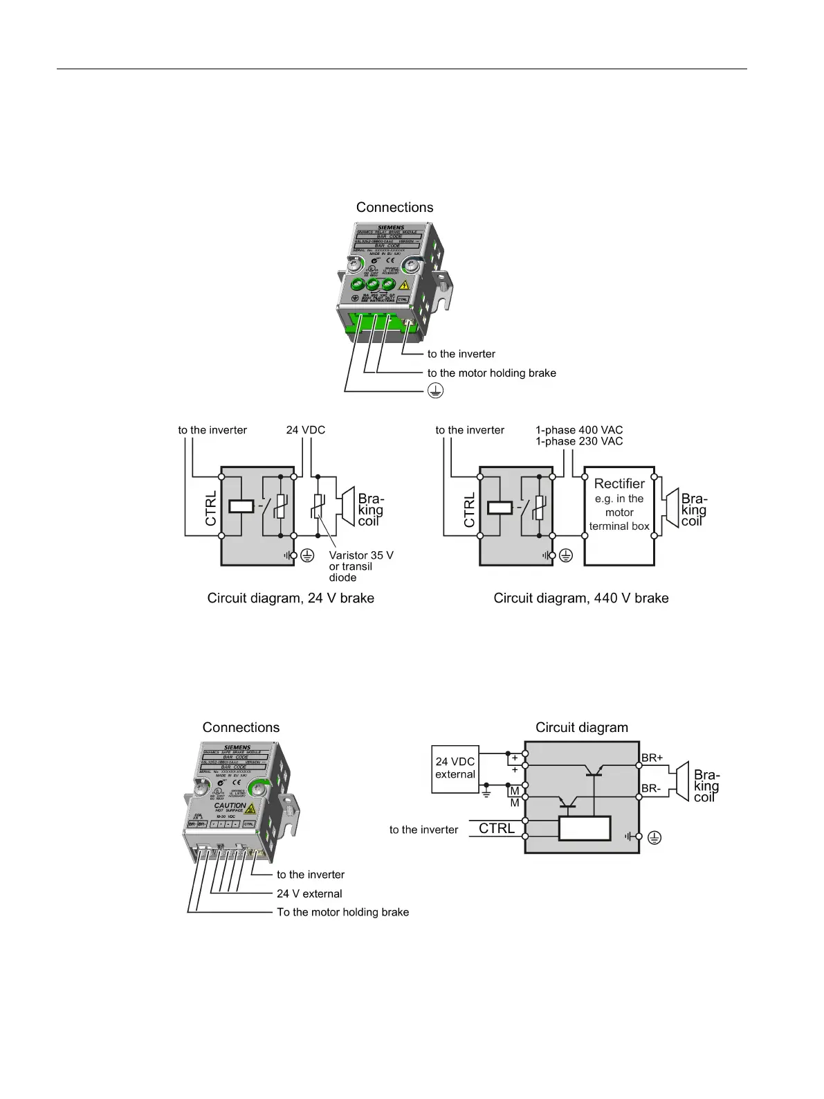 The Brake Relay must be connected to the protective conductor if the motor brake is