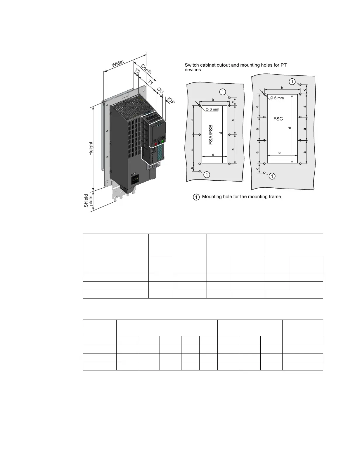 Table 4- 5 Drilling dimensions, cooling clearances and fixing