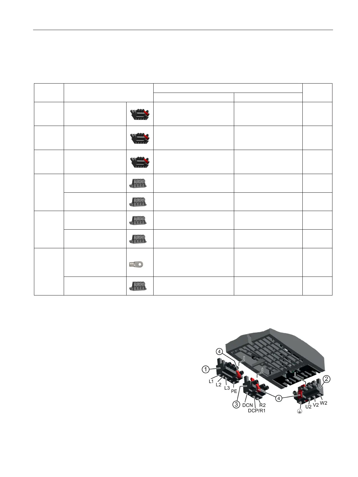 Table 5- 3 Connection type, cable cross sections and tightening torques